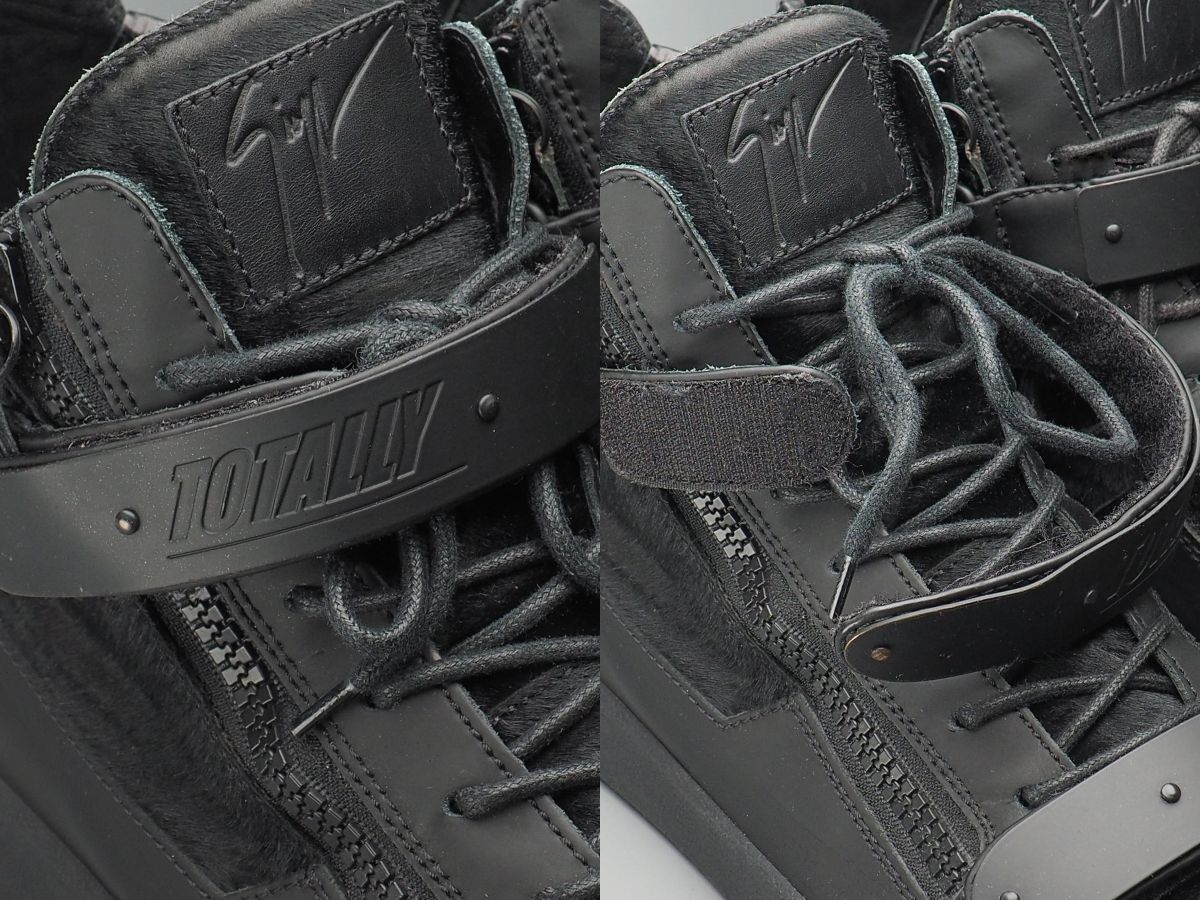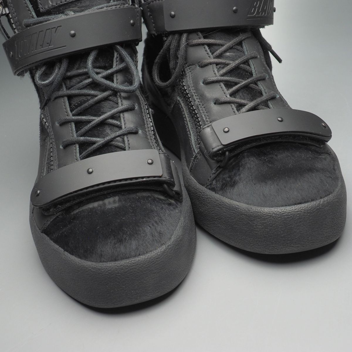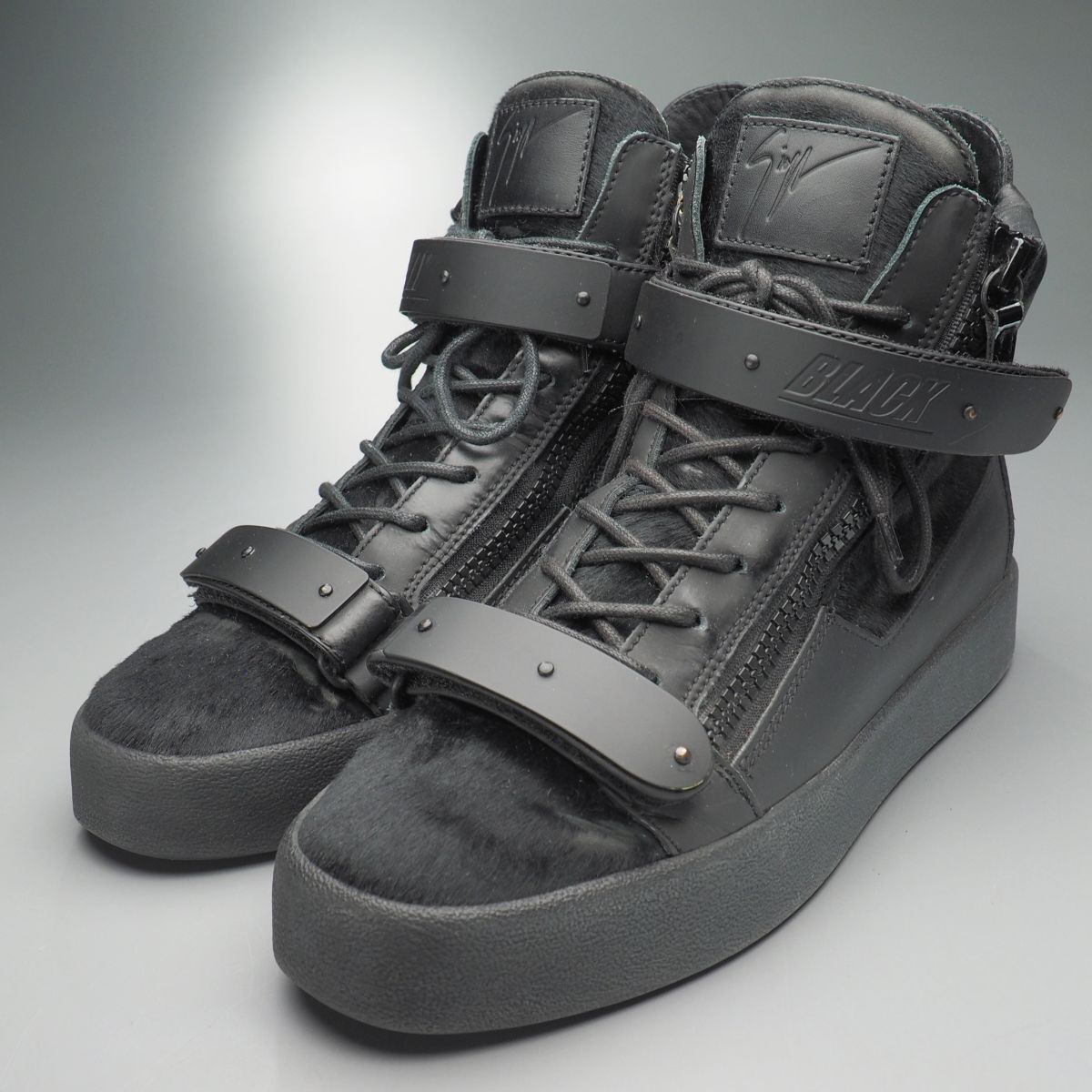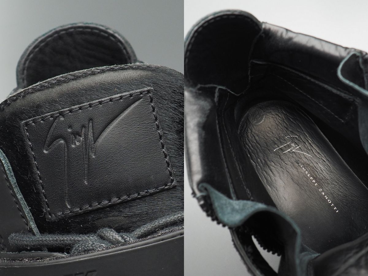 | GS5329//イタリア製*ジュゼッペザノッティ*Coby/メンズ44/TOTALLY BLACK/ハラコ×レザー×パテント/スニーカー/ハイカット/靴/黒/ブラック | |||