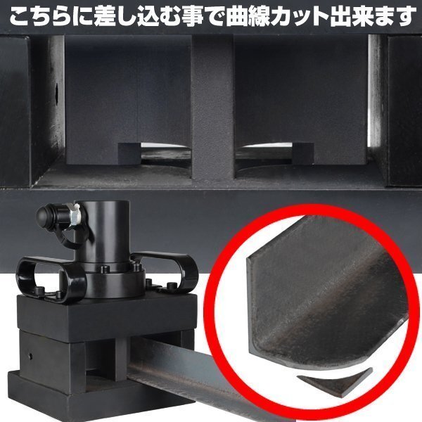 | 国内在庫有り! 即日発送可能! こちらはコンパクト設計でありながら、 据え置き型ならではの高出力コーナーカッターです。 これ一台で、斜めカットと曲線カットの両方が可能です。 アングル鋼だけではなく、鉄板等のプレートもカット可能です。 鋼材をはさみ、圧をかけるだけの簡単作業で素早くきれいにカット! 鉄材で最大6mm厚 50mm×50mmサイズまで対応しています。 金物パーツや取り付けステーを自主作成する際に重宝します! 本体サイズも、小型設計で省スペースでの作業が可能! 据え置き型だと場所と手間がかかる…そんなお悩みをお持ちの方必見! 鈑金業者様やDIYをされる方にオススメの工具です! ■今、油圧工具が選ばれています! アングルをカットする際、高速切断機を使われる方が多いかと思いますが、 高速切断機と比較すると、 ・作業時の騒音がほぼなく、昼夜問わず作業が出来る! ・切断時に火花が飛ばない為、鉄くず等のごみ排出が少なく掃除が楽! ・替刃の交換は不要なのでランニングコストがかからない! 等などメリットが盛りだくさんです! 周りへの配慮が最小限で済む為、職人様から個人様まで幅広く選ばれています!