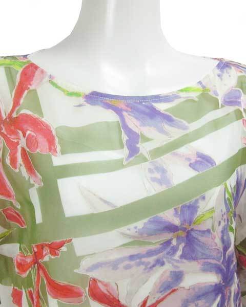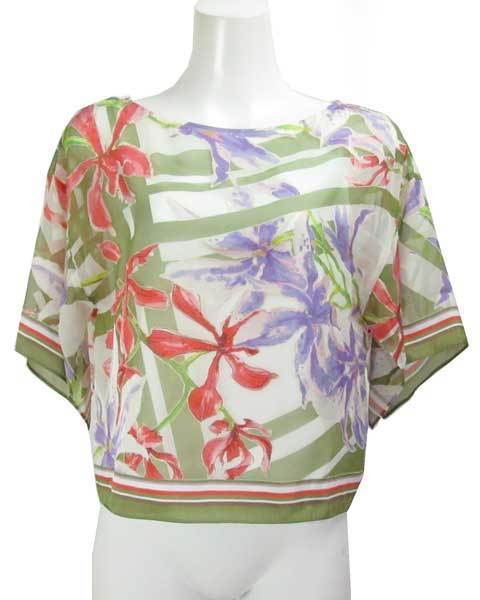 | ダイアグラム Diagram カーキ 花柄 シフォン ブラウス 36 |