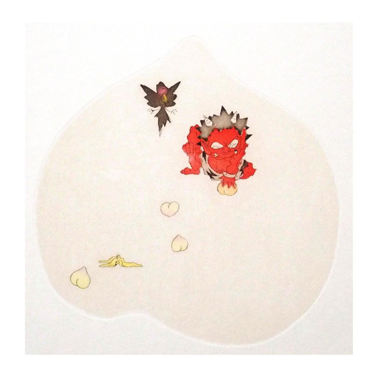 瀧下和之 「鬼ヶ島で桃コロリン。」 エッチング、アクアチント