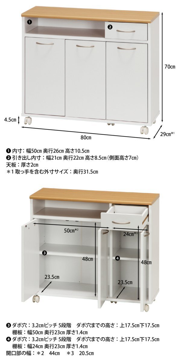 | サイズ | 約幅80×奥行29×高さ70cm(キャスターを含まない高さ65cm) |