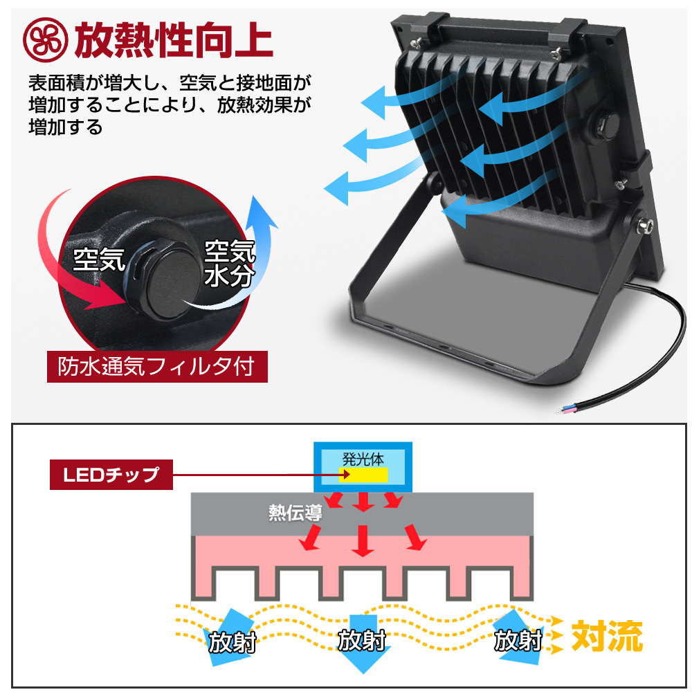 いつもled 投光器の寿命が短くなる原因は基本的に熱なのです。