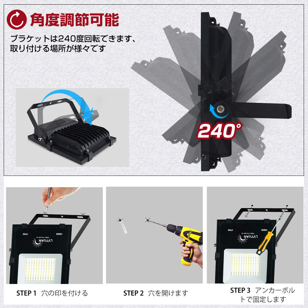 弊社のLED投光器は、散熱性能に優れたアルミウムを採用し、放熱が速く、効率が良く、更に大量の櫛型ヒートシンクは空気対流の原理に基づいて設計されることで、熱ダレによる故障を防ぎ、迅速に作業灯ledライトの放熱問題を解決し、更に長寿命を実現しました。