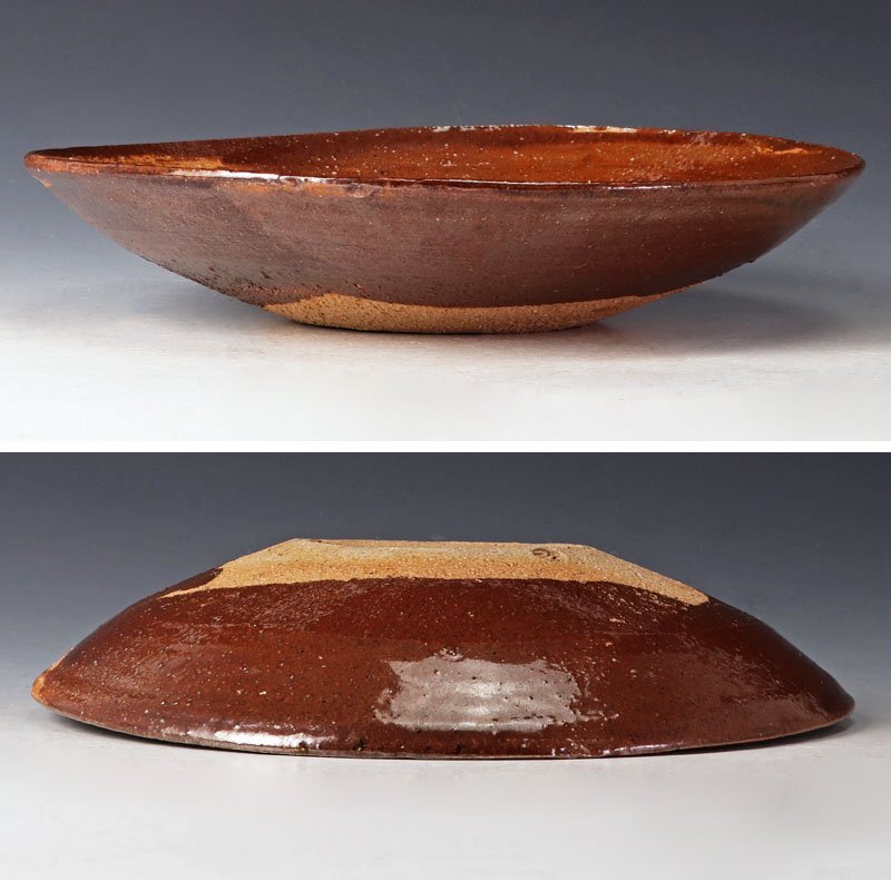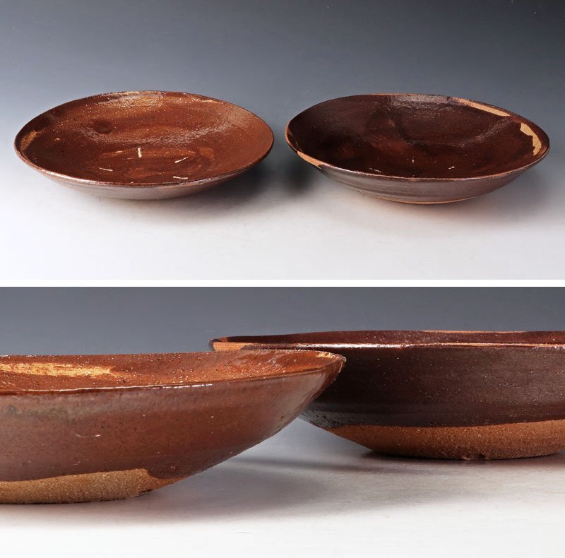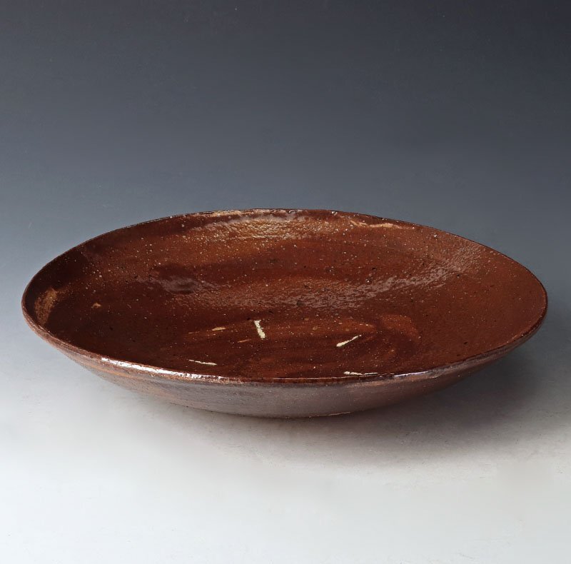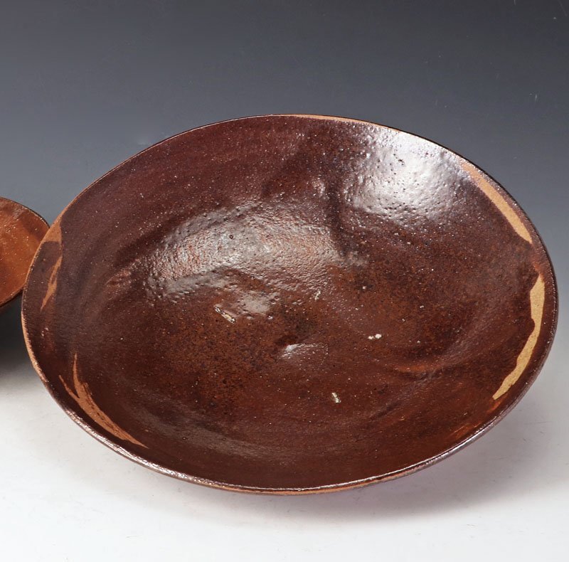 【石黒宗麿(いしぐろ むねまろ、1893年4月14日 - 1968年6月3日)】 富山県射水市出身の陶芸家。贈従四位。作品の多くは射水市新湊博物館に収蔵されている。 1918年(大正7年)中国宋の時代の陶器である曜変天目に惹かれ陶芸家を志した。 1936年(昭和11年)に京都市左京区八瀬で窯を開き、多くの作品を残した。ここが終の住み家となった。 1955年(昭和30年)2月15日、初の人間国宝(重要無形文化財「鉄釉陶器」保持者)の一人に認定、新湊市名誉市民に推挙。 1963年(昭和38年)紫綬褒章受章。 1968年(昭和43年)勲三等瑞宝章受章。6月3日、老衰のため死去。 【原清】 昭和11年(1936)、島根県生まれ。昭和29年(1954)、石黒宗麿、清水卯一に師事。京都で作陶の修業に入る。昭和33年(1958)、日本伝統工芸展入選、以後、入選重ねる。昭和36年(1961)、日本工芸会正会員。昭和40年(1965)、世田谷に築窯。昭和44年(1969)、伝統工芸新作展で受賞。昭和51年(1976)、日本陶磁協会賞受賞。昭和55年(1980)、埼玉県に窯と新工房を開設。昭和64年・平成元年(1989)、日本陶芸展に推薦出品。以後、推薦出品重ねる。平成4年(1992)、日本工芸会理事就任。平成17年(2005)、重要無形文化財「鉄釉陶器」の保持者に認定。 |
