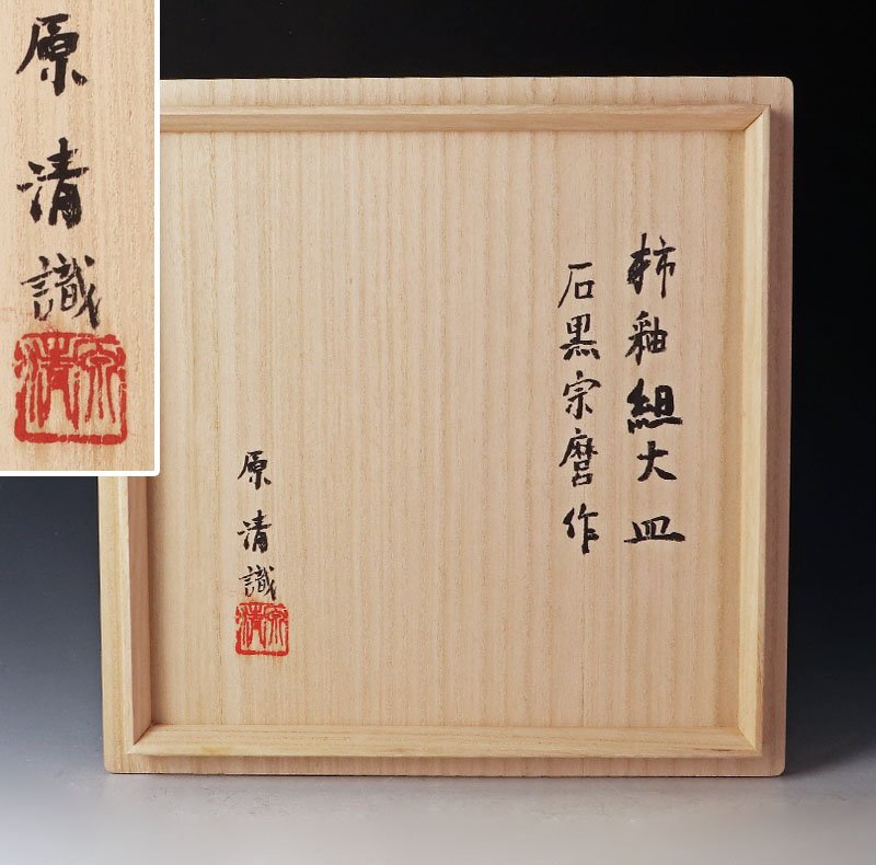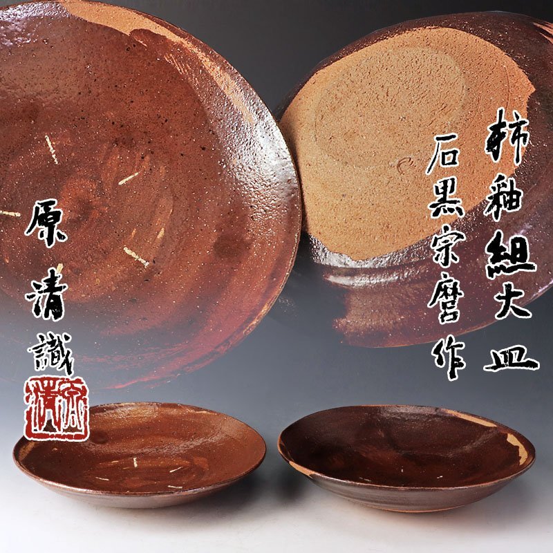 | 【古美味】人間国宝 石黒宗麿作 柿釉組大皿 人間国宝 原清識 茶道具 保証品 |