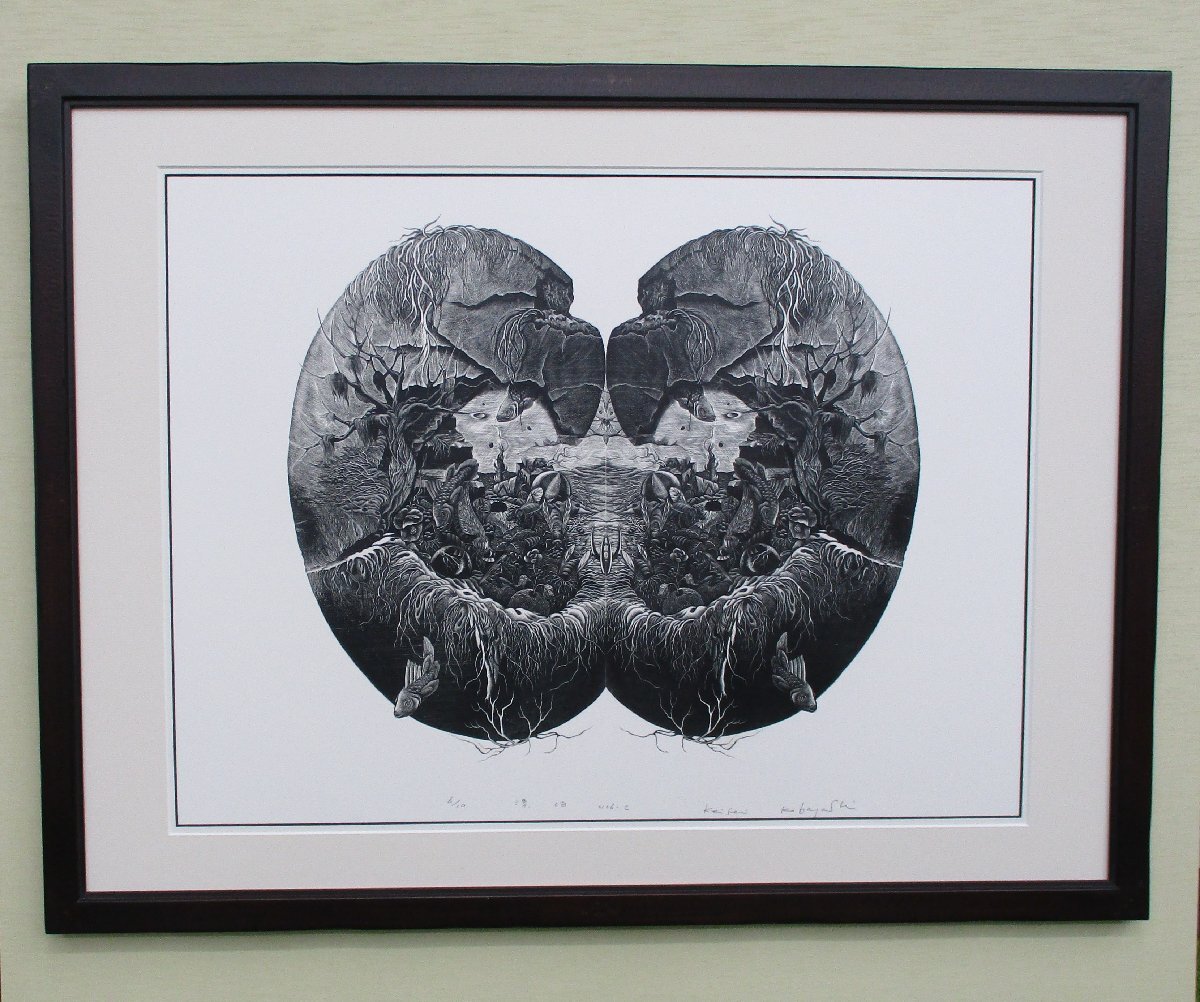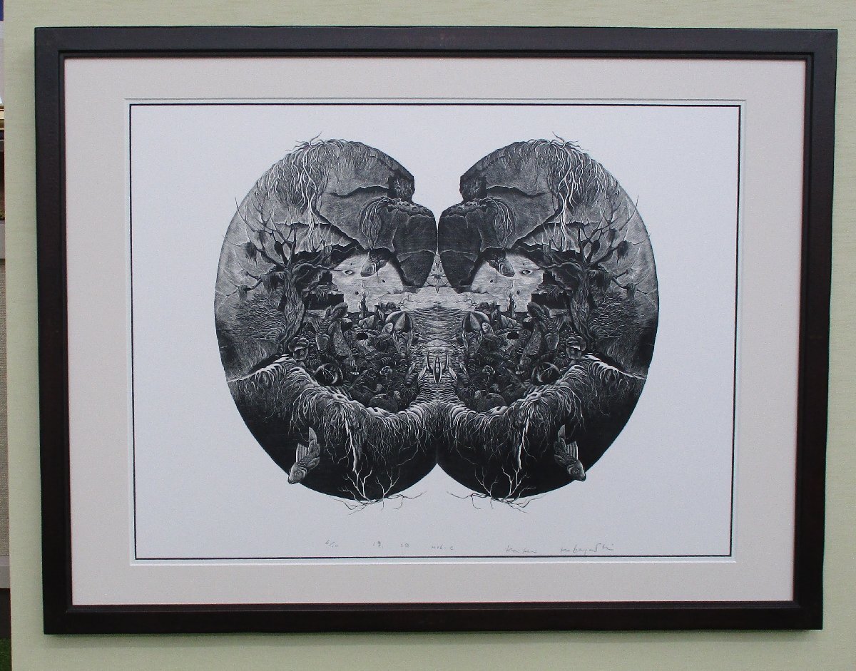 現代日本を代表する木口木版画の第1人者の小部数エディション 作者: 小林敬生 Kobayashi Keisei 題名: 「漂泊No.6-C」 版材 「黄楊1椿1,2枚組」 技法: 木口木版、鏡貼り エディション10部 サイン 印: 作者サイン有 作品サイズ: 580×430 mm 額装状態: 新品額装 UVアクリルガラス入り 額装外寸: 770×590mm 作品の状態: 良好 1981年製作 外箱: かぶせ箱 未使用品 | |||