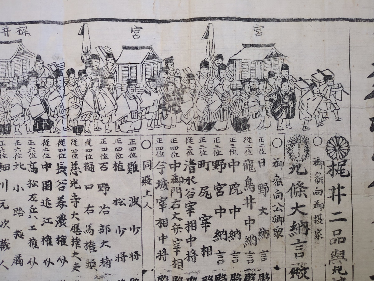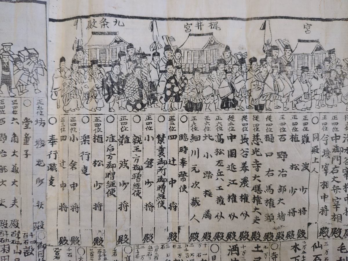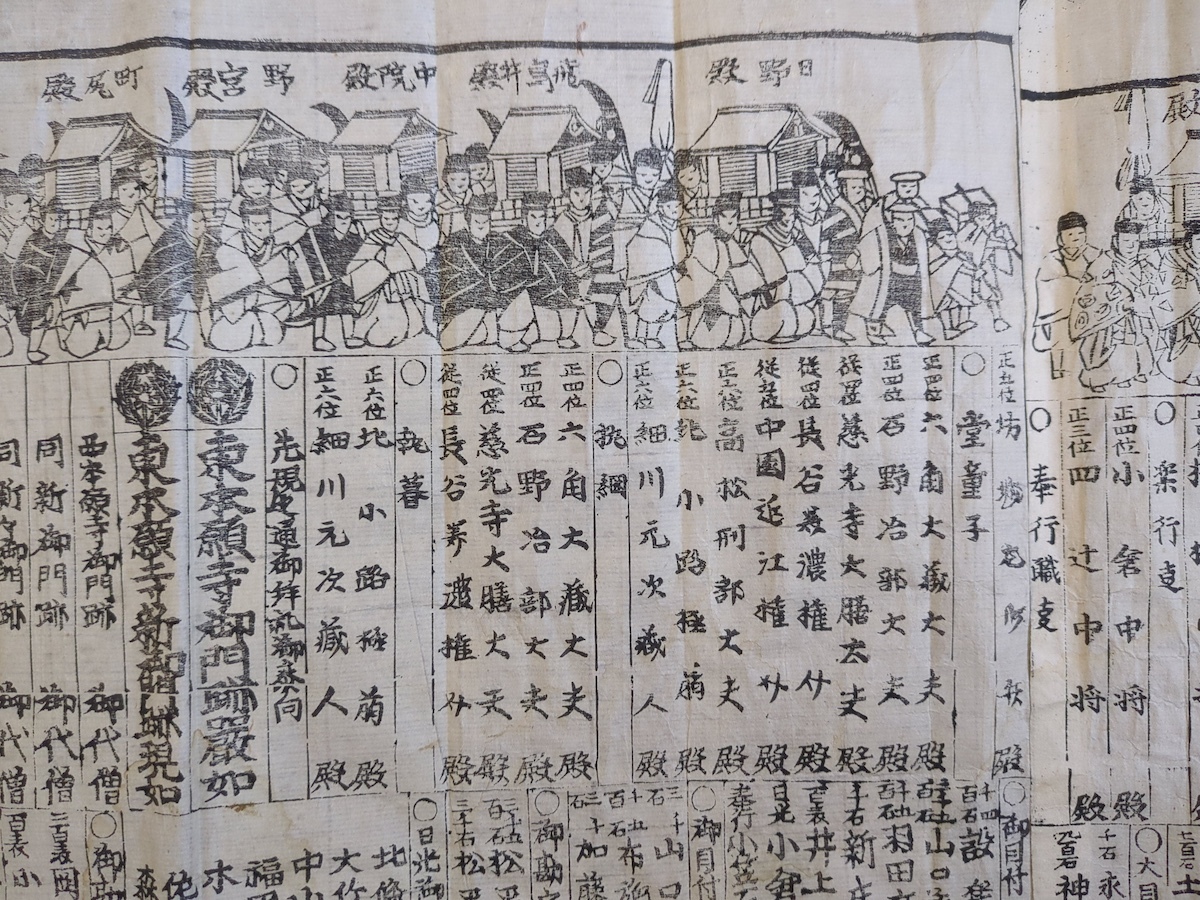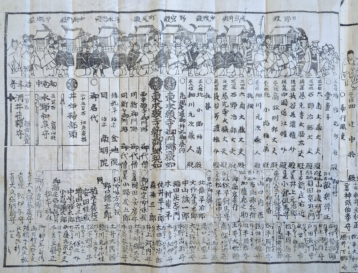 日光御神忌御泰向諸役附 武鑑 大名行列 江戸期 木版画 刷物 絵入 旗印 大名 武家名入 大判かわら板 新聞 和本 浮世絵 錦絵 古地図 鳥瞰図