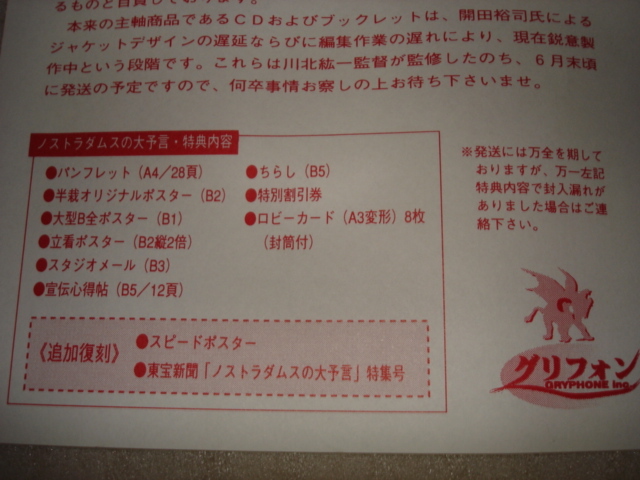 ノストラダムスの大予言の完全収録ドラマCDとBOOKとポスターその他の超希少なセットの出品です。