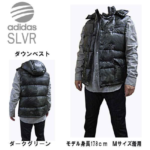 adidas(アディダス)SLVR ダウンベスト ダークグリーン(M)です。 ■サイズ 身幅約57cm、着丈約69cm。 ■素材 ポリエステル100% ダックダウン80%、フェザー20% adidas SLVRラインは スマートでお洒落。 さりげなくエレガントなスタイルで、 これまでのカジュアルウェアの 概念を変え、スポーツにインスパイアされた 上質仕立てのアイテムです。 ■特徴 表地は風を遮る素材、内側はダックダウンとフェザーで体を温めてくれます。色は濃いグリーンにブラックを混ぜたようなアーミーっぽいカラー。フロントはファスナーにボタン留め、ポケットは胸ポケット1ケ、ボタンポケット2ケ、ファスナー式内側ポケット1ケ。フードは取り外しできないタイプ。 ■画像2,3 モデル身長165cm、Sサイズ着用 | |||||