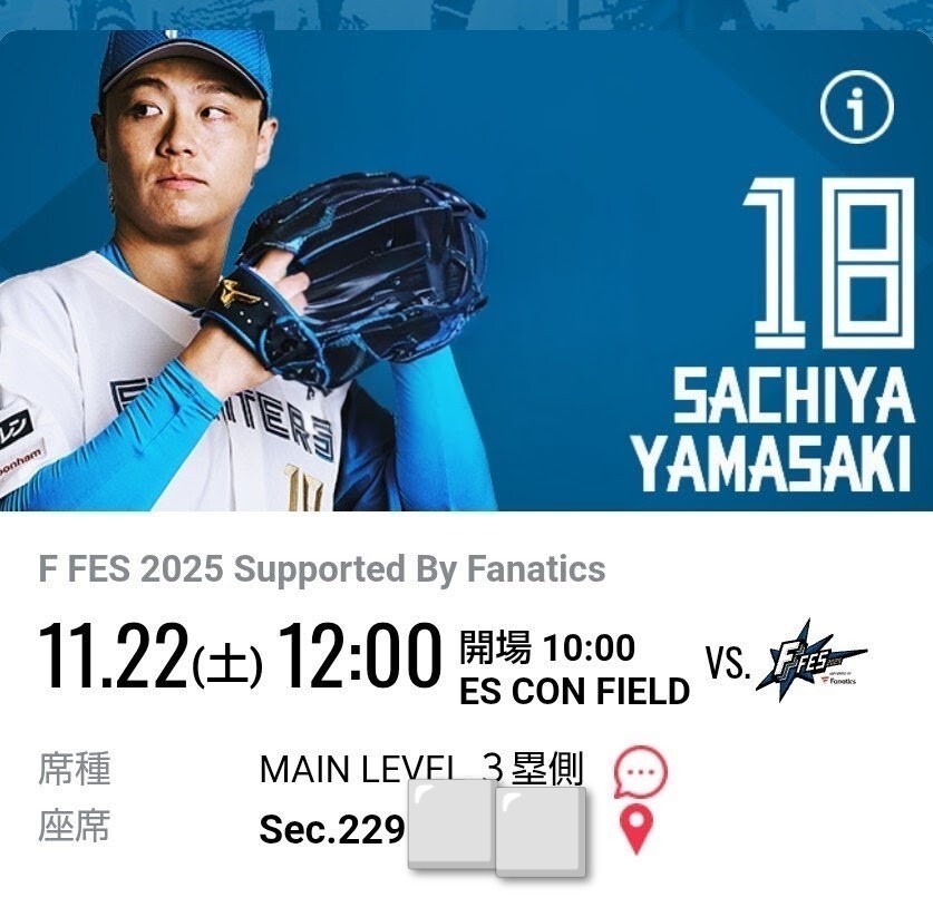 11月22日のエスコンで行われるファンフェスのチケット3連番になります。| 出价者 | 信用 | 价格 | 时间 |