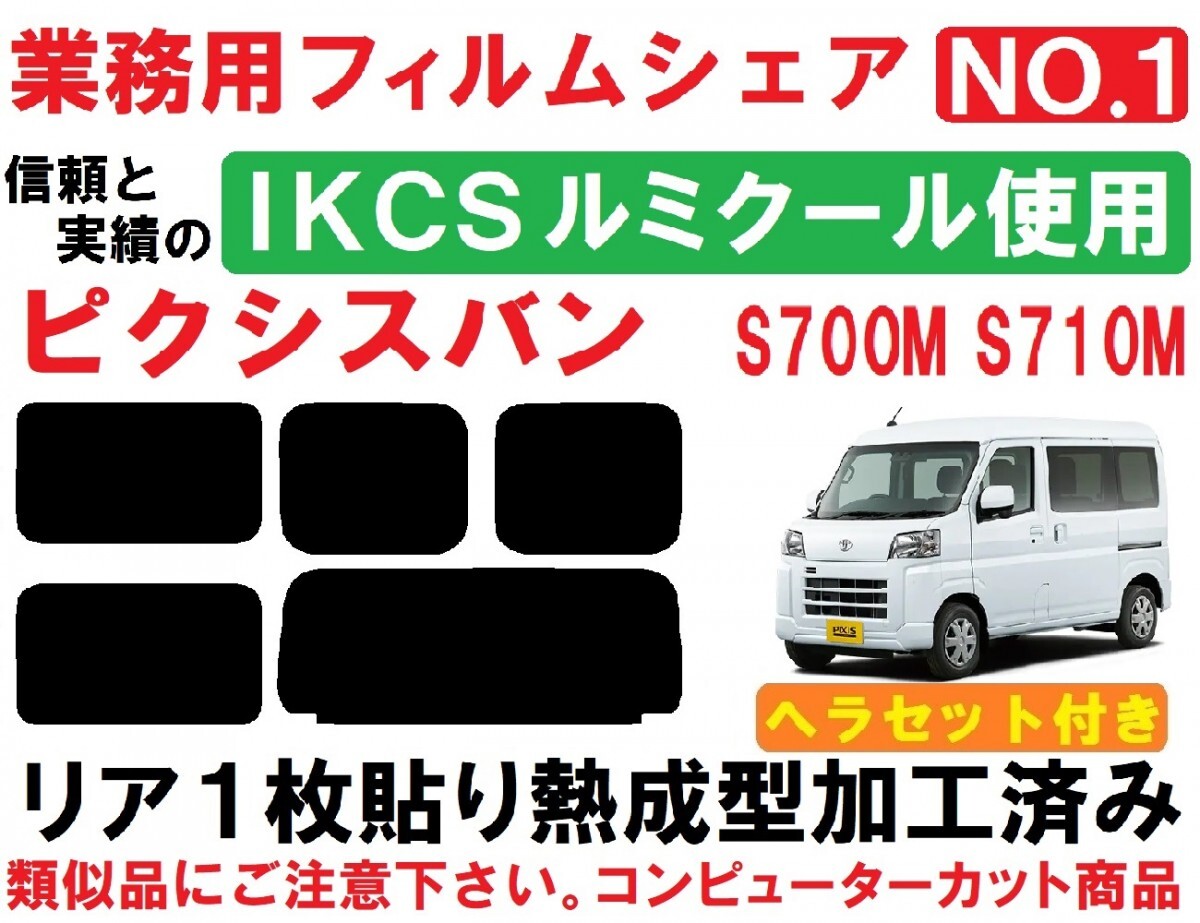 S700M S710M ピクシスバン 用『IKCSルミクール使用』1枚貼り成型加工済みフィルム リア5面セットです。(専用施工液付き) ・信頼の品質と実績で永い間業務用フィルムとして選ばれ続けているIKCS製品です。 ・業務用フィルムの中で最も信頼性の高い、ベストセラー商品です。 ・詳しくはアイケーシーエス株式会社HPをご覧ください。 ※『ルミクール』は当店でも 施工実績・販売実績NO.1の超人気商品です。 令和3年12月~ S700M S710M に適合します。 ●画像3 メーカーオプション、ポップアップ機能付きガラス(スライドドア部分)にもご対応出来ます。 ●画像4 メーカーオプションのスマートインナーミラー、カメラ部分の切り抜きにもご対応出来ます。 ※どちらも、ご指定の無い場合は標準カットとなります。 ※適合等ご不明な事など御座いましたら、お気軽にご質問下さい。 ◇◆◇当商品には、画像2のヘラセットが付属します◇◆◇ ■滑りの良いシリコンタイプのゴムヘラ スムーズに水切り(清掃)・貼り付け後の水抜きが出来ます。 実際の業務でも色々な物を試しましたが、シンプルなこの形状・このメーカー・このグレードの物が1番使いやすいです。 柔軟性が有りガラス(フィルム)に密着するため、フィルム折れも防げます。 ■使いやすい厚みとコシの有るプラヘラ 形状は似ていても各メーカーにより硬さ・厚みなど色々と有ります。 慣れていない方でも扱い易いように少々柔らか目の物になります。 ヘラ先にはフッ素樹脂加工のクロスを貼って有りますので、滑りが良くキズを防止します。 ■ワイプオール(不織布ワイパー) 布同様の丈夫さと紙の持つ吸水性を発揮。糸くずの発生が無く均一素材のため異物混入の心配が有りません。 施工前のガラスクリーニング~施工時にフィルムが触れる可能性の有るガラスの周りのゴム部品の拭き取り清掃~吸水等に大変便利です。 全て実際の業務に使用している物で、その中から使いやすい物を選んでいます。 ヘラセットがご不用の場合、フィルムのみの商品も有ります。こちら ◇◆◇精密コンピューターカット◇◆◇ 貼りやすさを最優先に各部のサイズ・形状など微調整し、改良を重ねた独自のデータを製作。 高精度な最新・大型カッティングプロッターによるカットで正確で滑らかなカットラインを再現しています。 施工業者だからわかる、貼りやすいサイズ・形状に仕上げています。 ◇◆◇リア1枚貼り成型加工済み◇◆◇ リアガラスの湾曲に合わせて熱成型加工して有りますので、平面に貼るのと同様にたるみが出ず1枚貼り出来ます。 ※最適な状態に成型加工して有りますので、ヒートガン(ドライヤー)等は不要です。 ◇◆◇専用施工液付属◇◆◇ 軽視されがちな施工液ですが、貼りやすさに大きく関わる部分になります。中性洗剤などで代用せず、必ず付属の専用施工液をご使用下さい。 濃度については車種・季節などにより変わりますので、個別にお知らせ致します。 国内シェアNO.1の『IKCSルミクール』を使用しています。 ※『ルミクール』は当店でも 施工実績・販売実績NO.1の超人気商品です。 ルミクールは経年退色が極めて少ない着色加工技術はもちろん、安定した冷暖房効率をアップする熱線遮断効果や断熱効果、内装を守り日焼けを防ぐため、全てのフィルムで99%の紫外線カットを実現しています。 ガラスの飛散防止効果で高い安全性を保ち、ハードコートタイプなのでキズにも強いカーフィルムです。 信頼の品質と性能で、永い間業務用フィルムとして選ばれ続けています。 ■フィルムの種類■ 可視光線透過率 3% NS-003HC 可視光線透過率 7% NS-008HC 可視光線透過率13% NS-015HC 可視光線透過率20% NS-020HC 可視光線透過率30% NS-030HC 可視光線透過率46% NS-045HC ■全商品、キズに強いハードコート・紫外線(UV)99%カットです。 ※可視光線透過率が低くなるほどフィルムの色は濃くなります。 サイドとリアで濃さを替えたり等、可能です。 部分的にフィルムが必要になった場合、単品販売も承ります。 他にもピクシスバン用フィルム、各種出品中です。こちらもご覧ください。 ご不明な点など有りましたら、お気軽にご質問下さい。 | ||