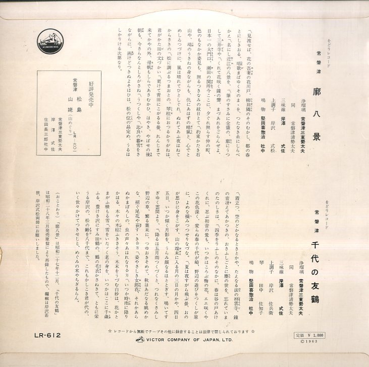 A00384157/10インチ/常磐津三東勢太夫「常磐津 廓八景・千代の友鶴」 [浏览原始页面]