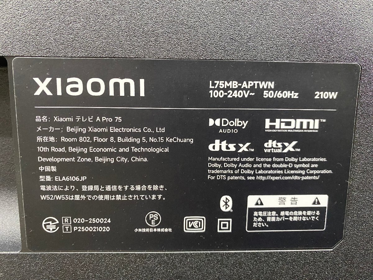 【新品】大阪発 Xiaomi 液晶テレビA pro 75 L75MB-APTWN 75インチ 2025年製 IMA ht | |||||||||||||||||||||||||||||||||||||||||||||||