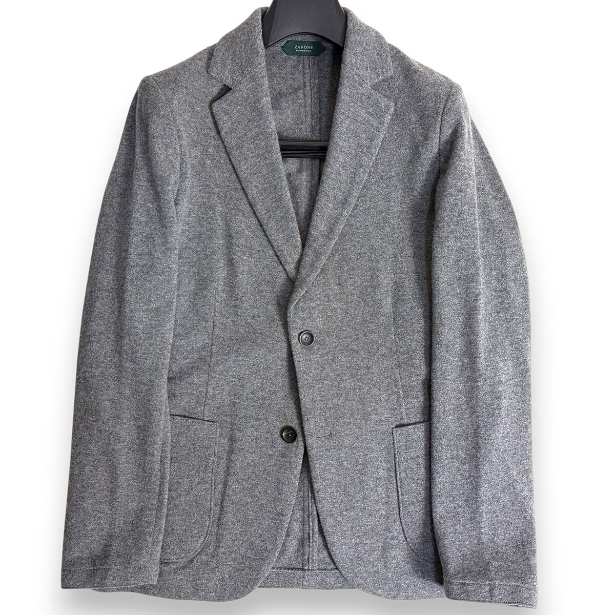 【サイズ】【48】肩幅40.5cm/身幅53cm(第一ボタン部分45cm)/着丈71cm/袖丈64cm超美品(Aランク・未使用に近い)ZANONE(ザノーネ)カシミヤミックス テーラードジャケットグレー 48柔らかく上質なカシミヤミックス素材を使用した、ザノーネらしい洗練されたジャケット。軽量でストレスのない着心地ながら、カーディガン感覚で羽織れて品よくまとまる1着です。ミニマルなノーベント仕様・裏地なし構造によって、すっきりとしたシルエットと軽やかさが際立ちます。【状態】超美品(Aランク)【カラー】グレー【素材】画像参照【購入先】AACD加盟リユースショップにて購入【仕様】・フロント2ボタン・ノーベント・裏地なし(軽量仕様)・袖ボタンなし(クリーンなデザイン)【ポイント】カーディガン感覚で着られる軽快ジャケットカシミヤ混の柔らかいタッチと上質感合わせやすいグレーでオンオフ対応ザノーネらしい洗練されたミニマルデザイン
