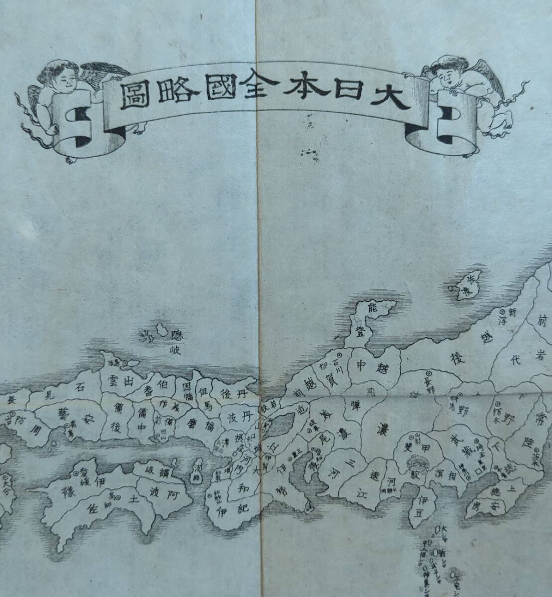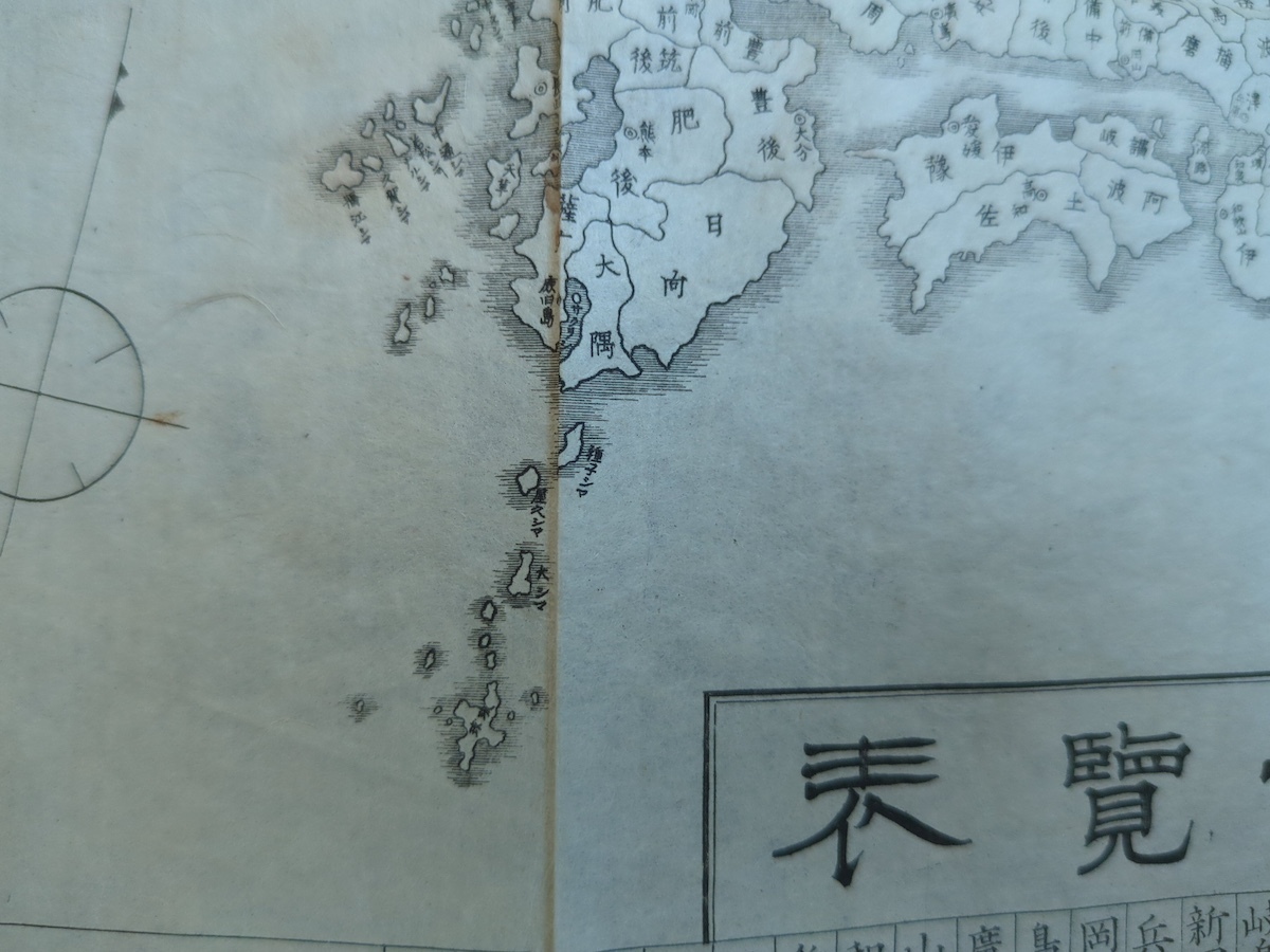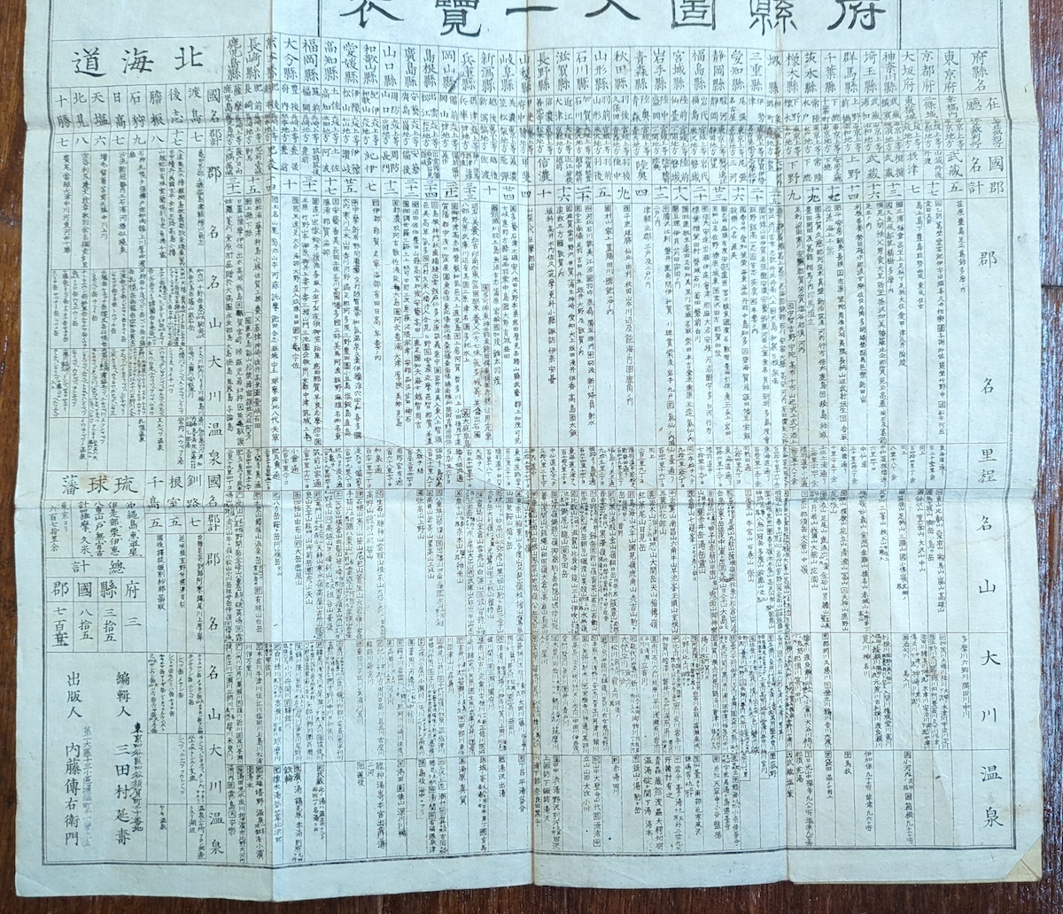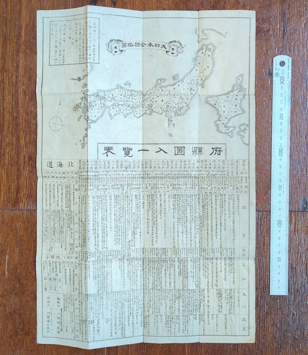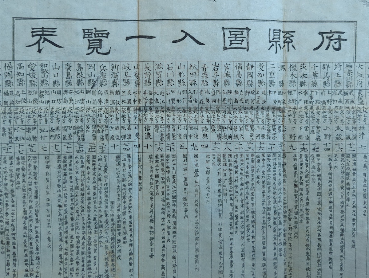 古地図 大日本全国略図 府県図入一覧表 表紙付 明治期 北海道 東京 古文書 鳥瞰図 資料 史料 古典籍 路線図 銅版画 摺物 完品