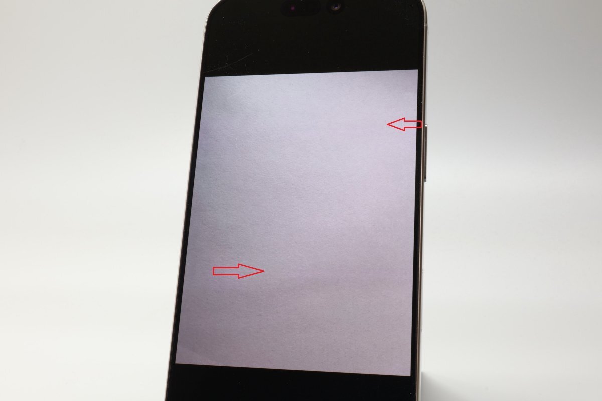・インカメラ撮影時、写真ともに横(青矢印)に光のラインが写り込みます(写真6 ※インカメラで撮影した写真を撮影してます)