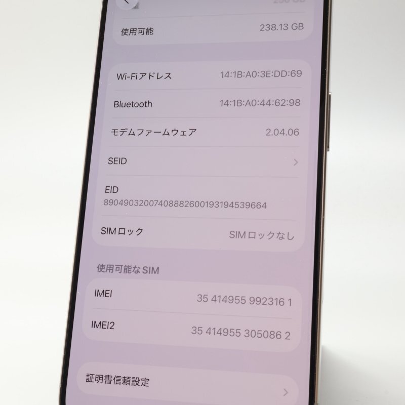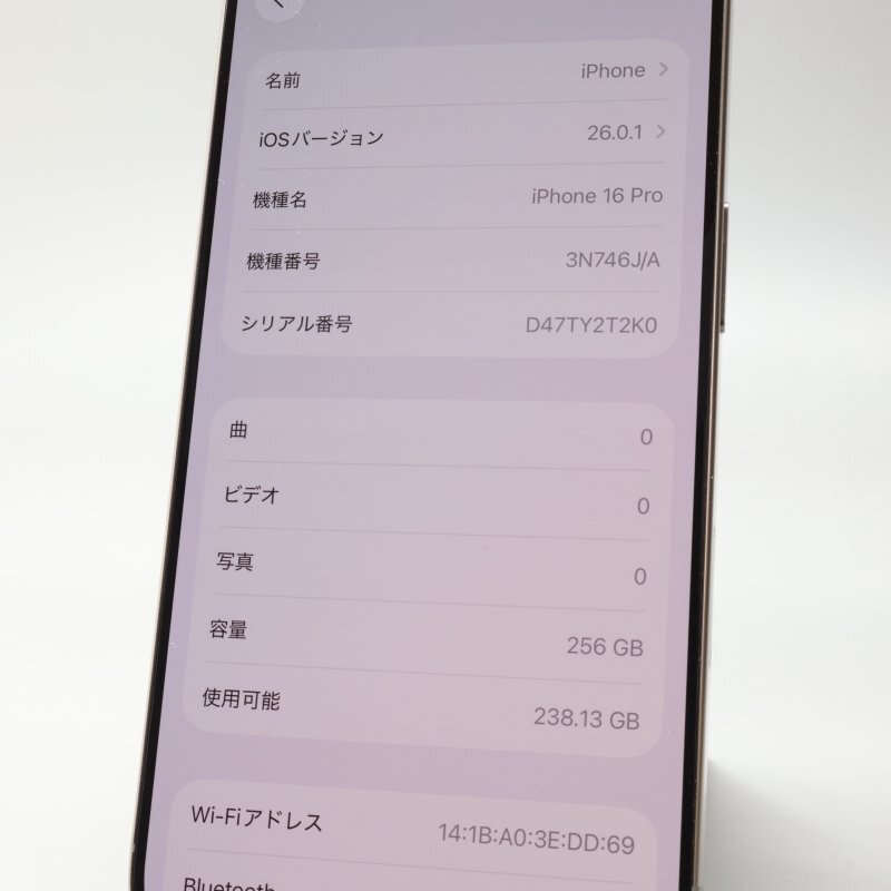 店頭展示品です。■機種 : iPhone16 Pro 256GB ナチュラルチタニウム A3292 3N746J/A
