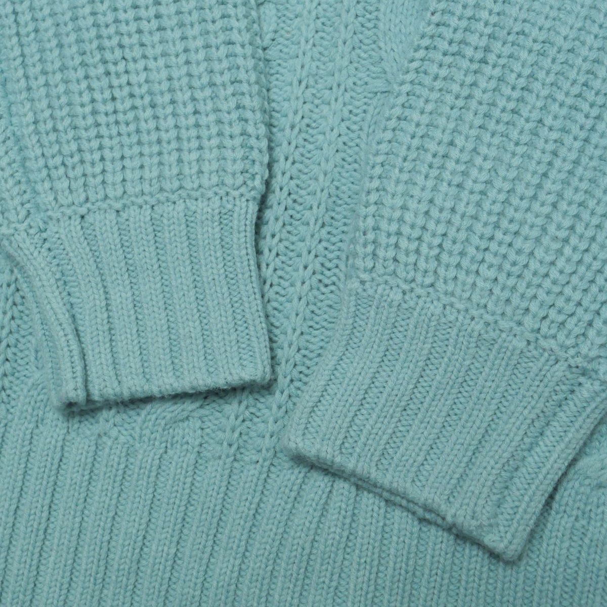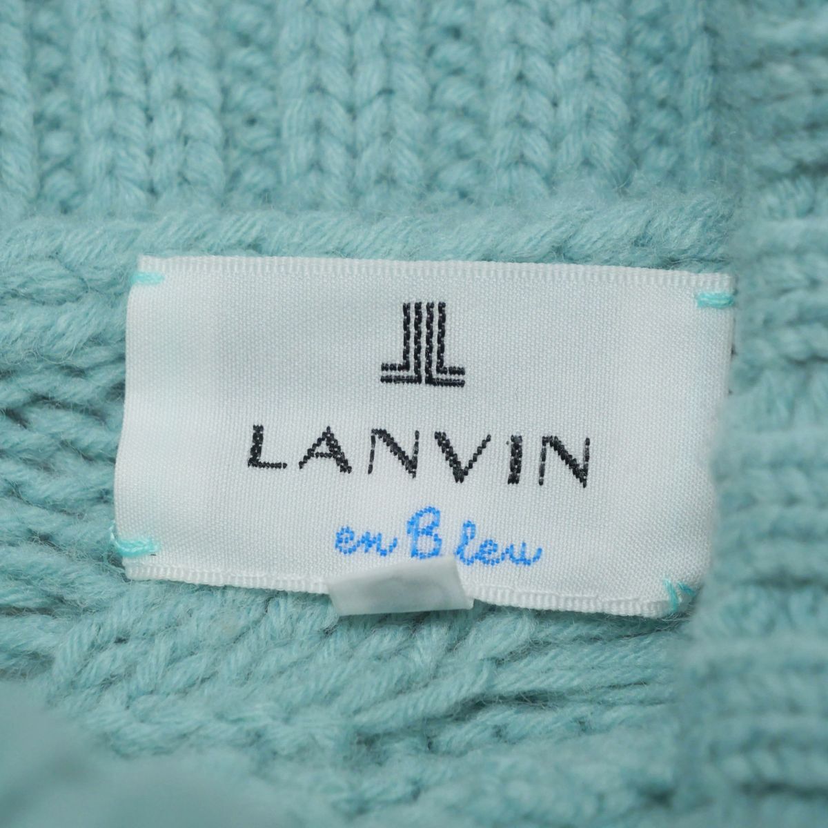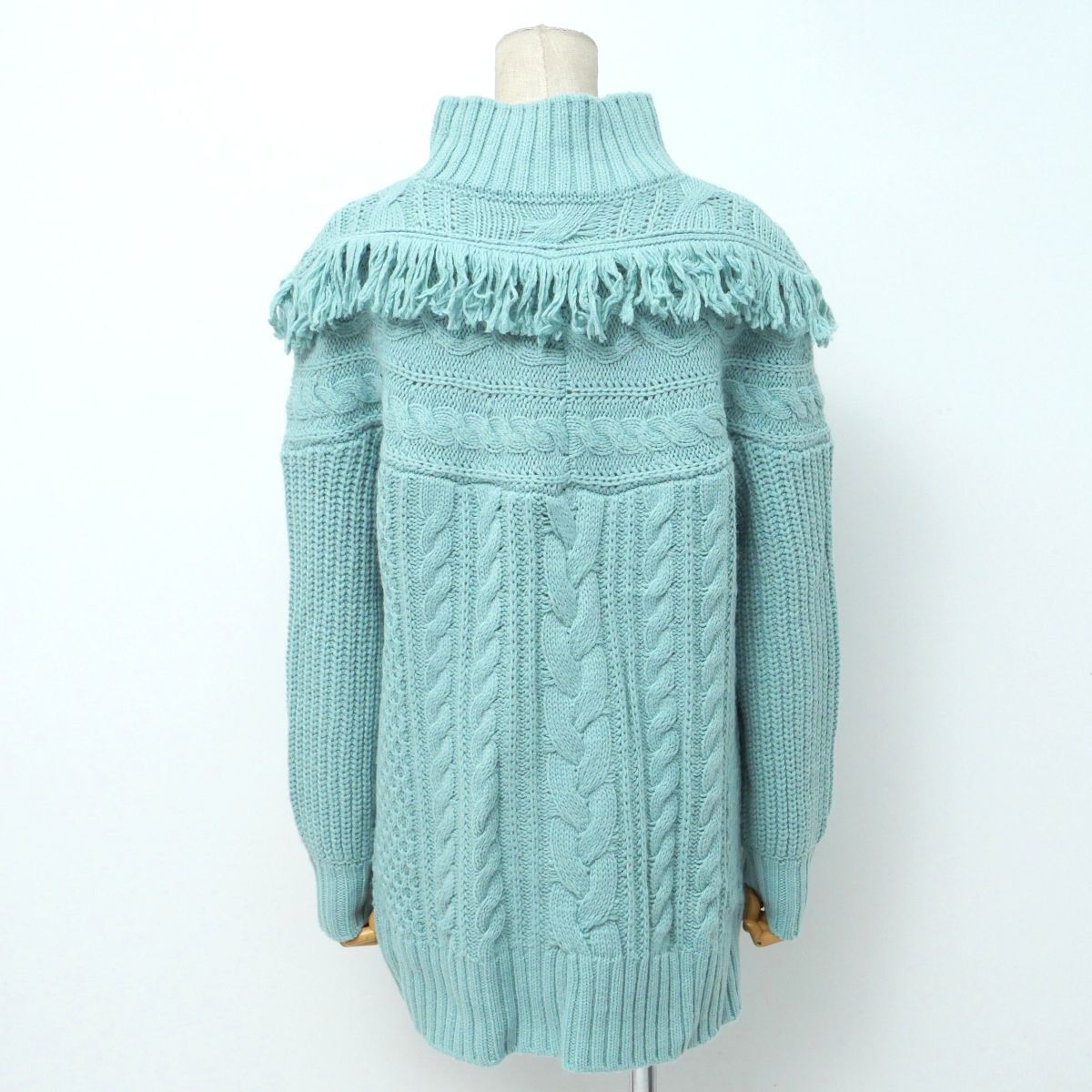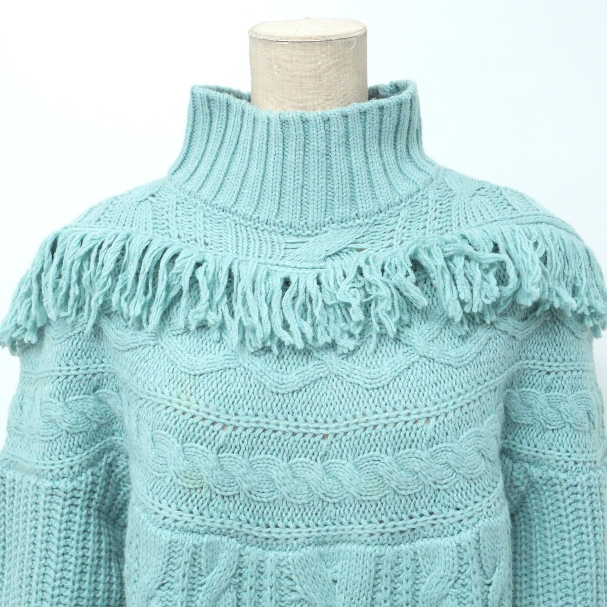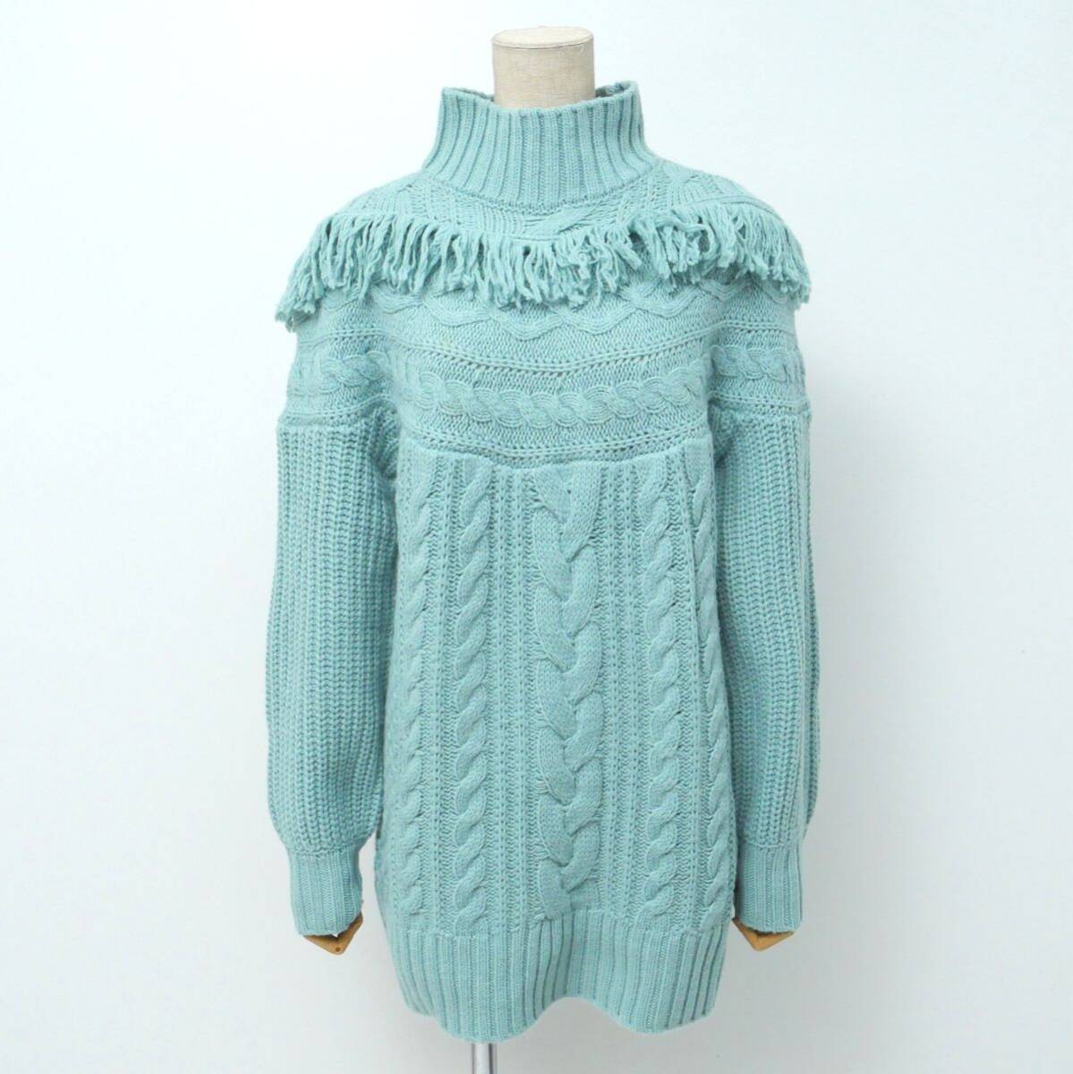 | TI6862☆ランバンオンブルー LANVIN en Bleu ケーブルニット セーター プルオーバーチュニック丈 ハイネック フリンジ ブルー系 38 | |||