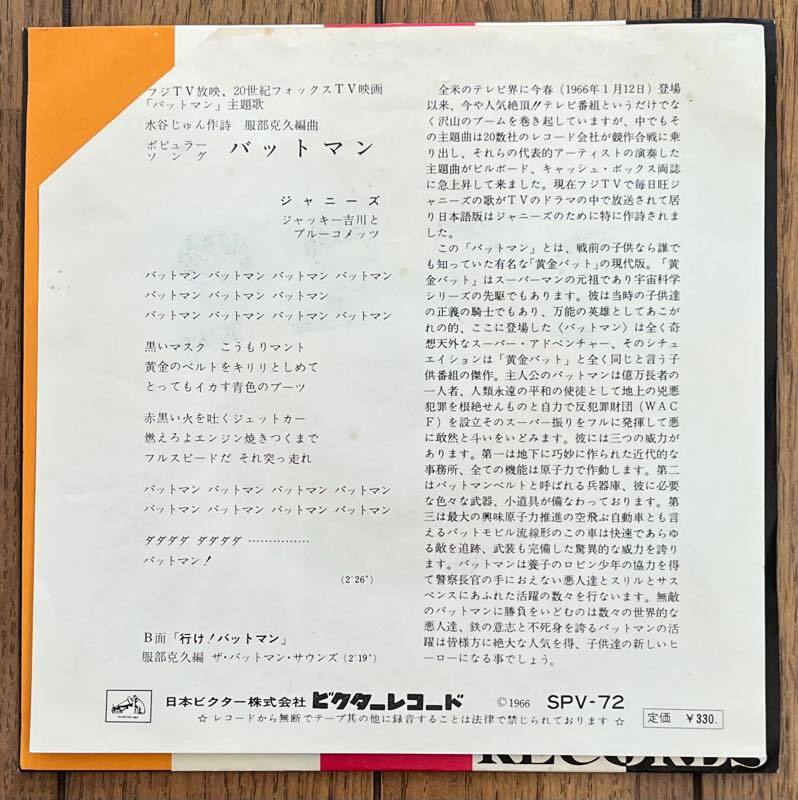 【和モノ TV映画 バットマン EP シングル レコード ジャニーズ ジャッキー吉川とブルーコメッツ/バットマン SPV-72 行け!バットマン 服部克久】 | 出价者 | 信用 | 价格 | 时间 |