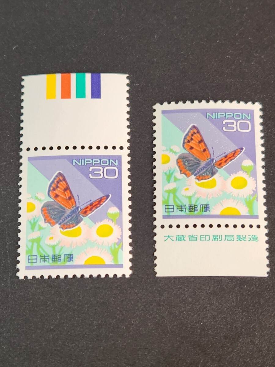 日本切手、普通切手30円カラーマーク付、銘版付2種未使用、NH、美品