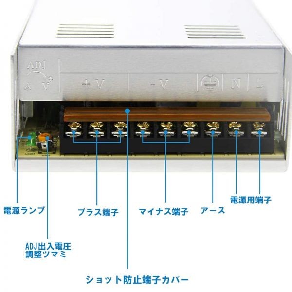 セット内容 コンバーター本体+AC電源コード 約1m+テスト用配線2本(赤と黒)(ワニグチクリップ) ■50/60Hz 出力:DC12V ADJ調整付 入力電圧:90V~130V / 170V~250V(スイッチ切替式2段階) 出力電圧:DC12V 最大使用電流:30A/350W 本体寸法:約縦50mm/横215mm/奥行115mm 使用方法 1.最初に、本体側面のスイッチを【110V】に切り替えてください。 2.付属品の「AC電源コード」のプラス(赤)をNに。マイナス(青)をLに繋ぎます。 ※端子右から二つの「N・L」と表示されている部分です。 3.ケーブルのプラス(赤)は、「+V」と表示されている端子に繋いでください。 次に、マイナス(黒)は、「-V」と表示されている端子に繋いでください。 4.「AC電源コード」をAC100Vコンセント(家庭用コンセント)に差し込んでください。 5.プラス(赤)、プラス(黒)を確認して、ご使用の電機製品に繋いでください。 ※動作チェック後の出荷をしております。 HIDのチェック、カーオーディオ、カーナビのチェック、フォグランプのチェック 、電球の点灯チェック等の自動車用の電源チェックに 、 DC12V機器の研究、 ワークライト(作業灯) とLEDテープ の接続、様々な場面で活躍できます! |
