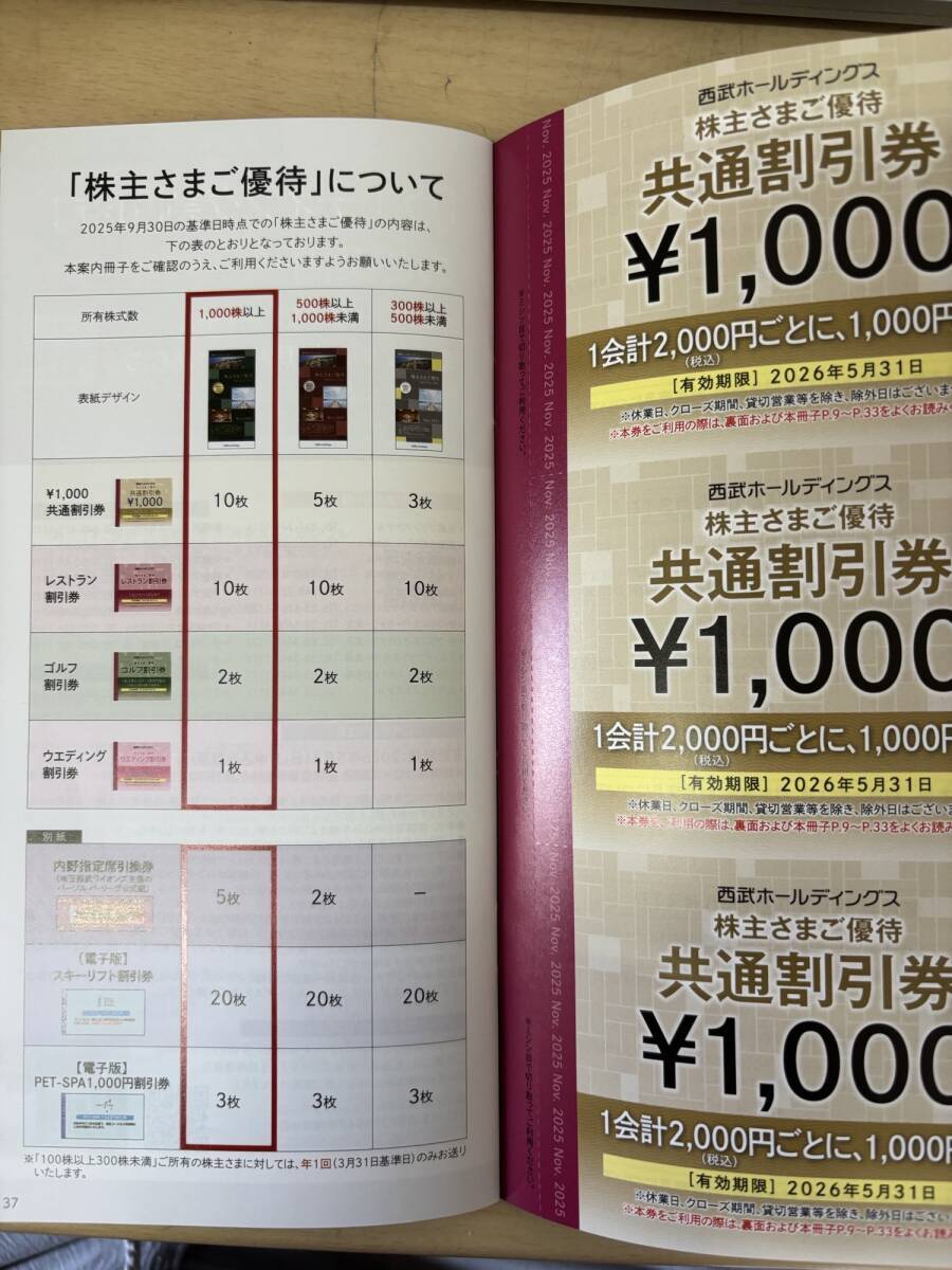 [3冊]西武ホールディングス 株主優待:1000株以上 [3冊子]:電子版:スキーリフト割引券【40枚】「コード通知 」【有効期限】 2026年5月末| 券種 | おとな | こども(小学生以下) |