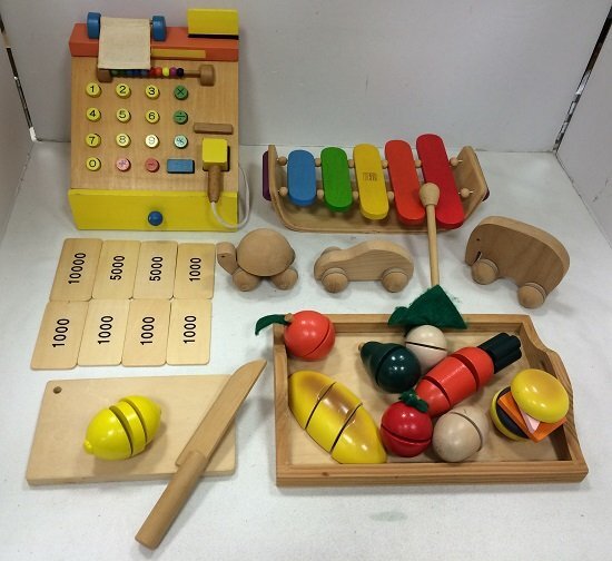 ◆【ジャンク/現状】木のおもちゃ おままごと等 まとめ売り ◇状態:J1 画像1に写っているもので全てです。 商品に、擦れ傷、汚れ、埃汚れ等がございます。状態良好です。 写真に写っているもので全てです。 外箱、説明書等画像に載っていない商品は、欠品です。 現状でのお渡しとなります。 袋に入れてプチプチで包み段ボールでの発送とさせていただきます。 画像にて状態・内容をご確認の上、あらかじめご了承くださいませ。 ◇一度人の手に渡った物ですので、神経質な方は入札を御遠慮ください。 ◆不明な点がございましたら、入札前に、ご質問くださいませ。 |