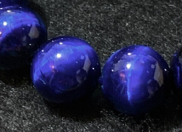 ずっと綺麗なブルータイガーアイを探していてこれを見つけました。安いブルータイガーアイは色が悪く何回か買い付けに失敗しました。相当な金額を出せばあるのでしょうが、なんとか安くていい工場を探し、こちらの品がありました。ブルーのシラーが美しく、石の本体も黒が深いので、ほとんど宝石のような輝きを放っています。貴重な守護石として、また、知性を司るパワーストーンとして、大切にしてください。