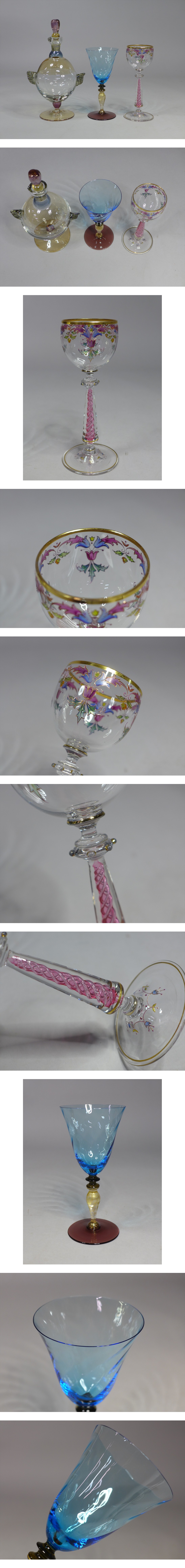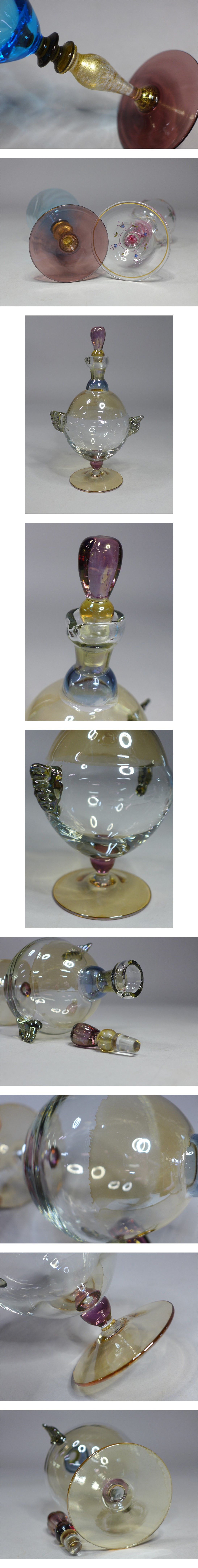デキャンタ高さ約26cm、青グラス高さ約18,3cmです。素晴らしい意匠のガラス製品です、お好きなかたどうぞ!少々のスレが見えますがおおむね良好かと思っております、内容や状態などは画像参照でお願いします。