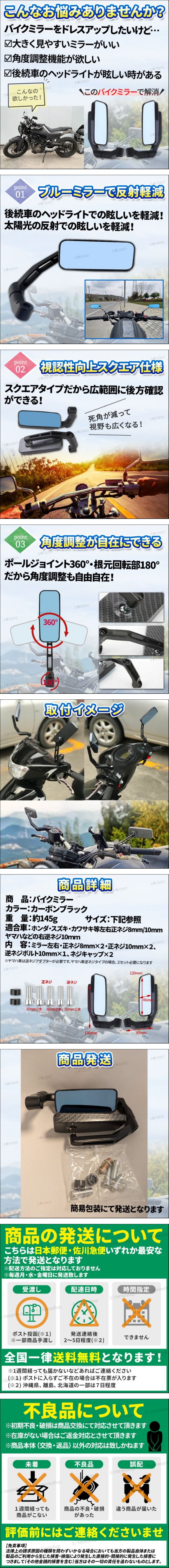 バイクミラー バックミラー 汎用 左右セット カーボン スクエア ブルーレンズ 8mm 10mm オートバイ 原付 ヤマハ スズキ ホンダ 汎用 ② [浏览原始页面]