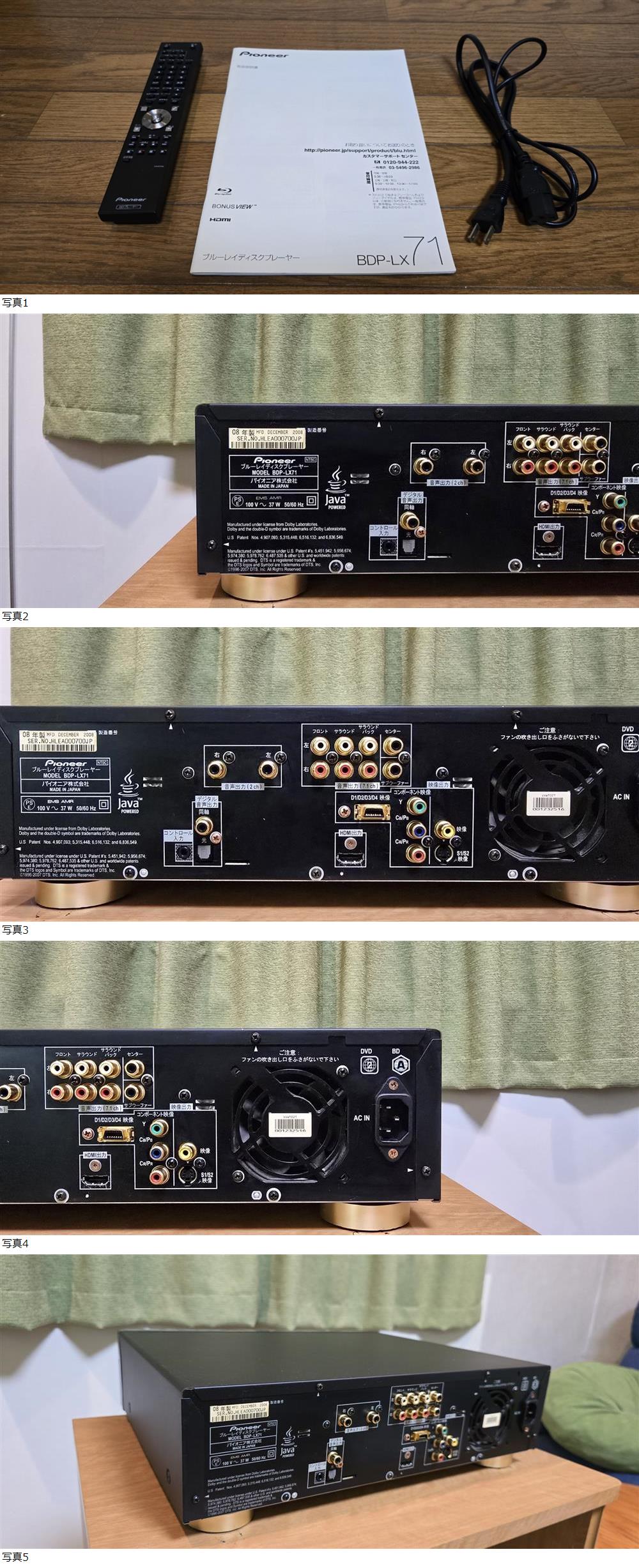 | 商品説明 | ●説明 以下、当方の定型文に手を加えての簡易説明になります。 必ず最後までお読みください。 ●パイオニア ブルーレイディスクプレーヤー BDP-LX71 難あり品です。 ※当方ワンオーナー品で、2008年式 12月生産機で、発売価格118.000円と高価格の機種です。 ※外観は、ピアノブラックのフロントパネルや天板に目立った傷も無く、美品機になります。 ※純正リモコンも傷は無く綺麗な状態です。 ※動作 CD、DVDの再生は可能ですが、BD/ブルーレイディスクは読込み不可のため、難あり機になります。 修理前提で入札をお願いします。 ※BDディスクによっては読込みが出来る場合もありますが、滅多にありませんでした。 ※付属品 純正リモコンと取扱説明書、電源ケーブルがあります。 (リモコン電池は新品付属) ●BDP-LX71は高画質/高音質の機種で、同社の黒再現が得意なプラズマテレビ KRP-500P KUROにHDMI接続して視聴していました。 ※唯一、読み込みが遅いのが難点です。 ●代金支払い/発送 ※落札代金の支払いは、かんたん決済のみ対応しています。 ※発送は、ヤマト運輸の送料着払いで、最短到着予定での対応になります ●説明文を最後まで読まずに入札される方が後を絶ちませんが、その場合は説明文の内容、注意事項を了承して入札したことにさせて頂きます。 ●注意/最後まで必ずお読みください! 「非常に良い」の評価が2未満の方、「非常に悪い」の評価が多い方の入札は、嫌がらせ落札防止のため、入札の取り消しをさせて頂く場合があります。 ※商品落札後、26時間内にご住所、お名前等の連絡をお願いします。 ※但し、評価の「非常に悪い」が多い方はオークション終了後3時間以内に、並びに当方からオークション終了後取引ナビで連絡しても返答がない方は、嫌がらせ落札と判断、落札者都合によるキャンセルで削除、評価は、「非常に悪い」を入れさせて頂きます。 ※代金支払いは、落札後から26時間以内にお願いします。 ※受取連絡、配達希望日がオークション終了後2日以上遅くなる方は入札しないでください。 ※受取連絡をされない方や、動作確認が終わるまでは受取連絡をしない方がおられますが、商品が到着した時点で、必ず受取連絡をしてください。 ※速やかに受取連絡をされない場合や受取連絡が遅くなる方、落札後希望配達日が遅い日にちを指定される場合、ブラックリストに登録、保証修理対応、取引ナビでの対応等、全て免責にさせて頂きます。 ※その場合、評価は「非常に悪い」を入れさせて頂きます。 ※そうならない様に、絶対に入札はしないでください。 ●評価について 評価については、感謝の意を込めて入れて頂いたのと同等のを入れさせて頂きます。 ※今現在、「非常に悪い」の評価1は、石川県野々市市の落札者による嫌がらせ行為のものです。 最初から「非常に悪い」の評価を入れるのが目的で落札してきました。 そのため、内容も評価内容もデタラメで、動作確認後問題無しで発送、内部も画像通りの綺麗な状態にも関わらず、埃だらけでノイズが発生すると嘘を記載。 この様な悪質な人物対応として、個人情報を把握しているため、営業妨害の法的措置も有り得るので、ご注意ください。 ●表記説明について ①フルオリジナル、フルノーマル表記 分解整備を実施してありますが、無駄にハンダは溶かさず、半導体は交換せずに整備してある個体に付与してあります。 純正本来の高音質を保持しており、音質に拘る方向けの整備です。 ※特にソニーの333/555シリーズは、生産効率向上の作りユニット/コネクター方式で、ハンダを溶かさずに分解可能です ※オリジナル、ノーマル表記は、サイドウッド等部品が欠品している個体の場合です。 ②上記の表記無し ハンダ痩せ修正、半導体交換等、整備してあります。 此方は、ハンダを溶かしてあるため、純正本来の高音質再生は到底無理なので、その件を了承して入札してください。 ※但し、無駄にハンダは溶かさない方針は変えていないので、必要最低限箇所のハンダしか溶かしてありません。 ▼注意! ※「修理保証付/改良機」「ワンオフ分解整備済み」「分解整備済み」「分解整備済み!」「分解整備品」「分解清掃済み」「分解整備調整済」「分解・整備済」「分解整備済み!」「分解整備修理済」「分解整備点検済」「徹底分解メンテナンス済」「分解メンテナンス済み」「◆徹底分解メンテ」「分解メンテ済み」「分解清掃済み」「フルオリジナル機」「フルノーマル」「オリジナル機」「ノーマル機」「シリーズ中最強」「シリーズ中最高峰機」「555シリーズ中最強・最高峰機」「極上機」「準極上機」「準美品」の言葉は当方の造語で、主観によるものです。 ▼商品画像並びにタイトル、造語、商品説明文の無断転載を固く禁じます。 ▼画像並びにタイトル、造語、商品説明文の著作権は、本オークション出品者である当方に帰属します。 ▼無断転載をされた場合、告知無しで著作権侵害並びに
