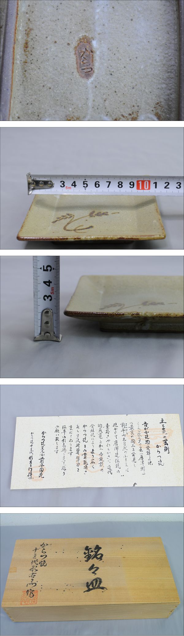 | からつ焼 銘々皿 角皿 5枚 共箱/検索用 在銘 時代物 当時物 小皿 取り皿 菓子皿 和食器【03002】 | ||