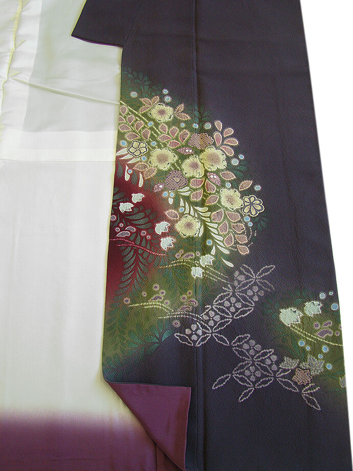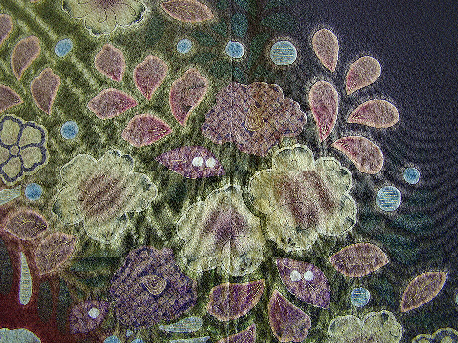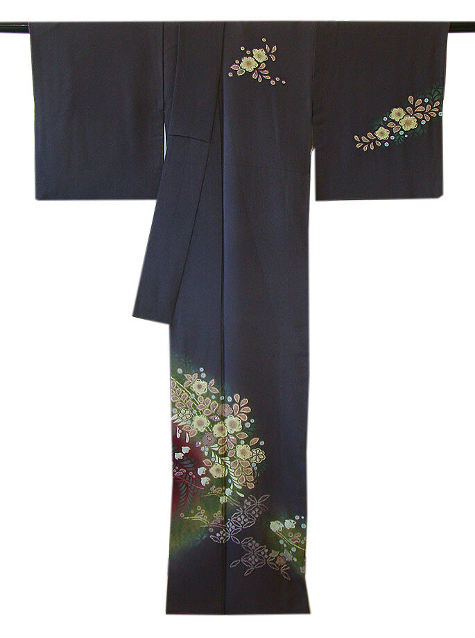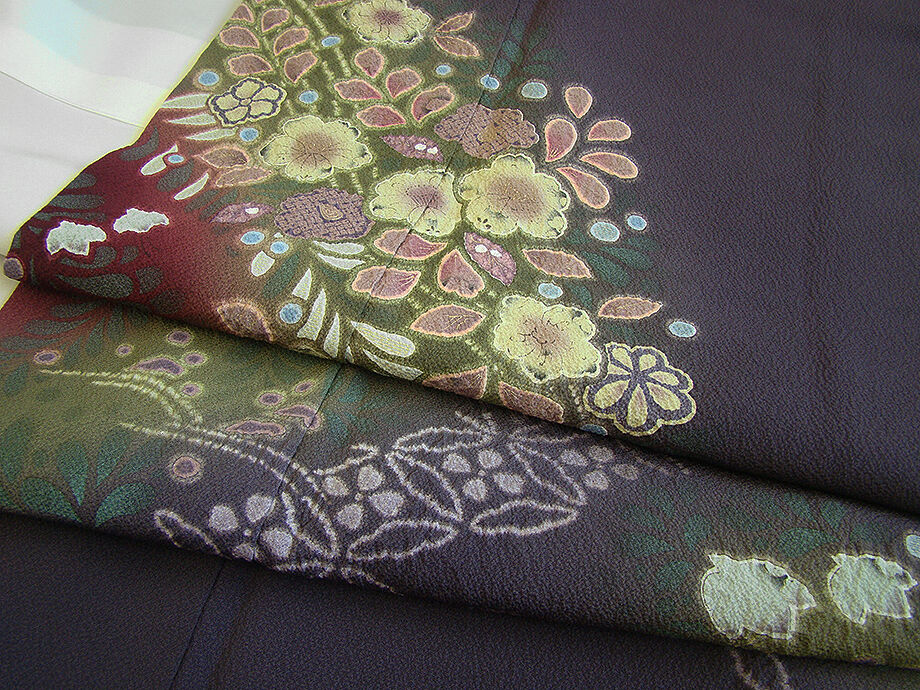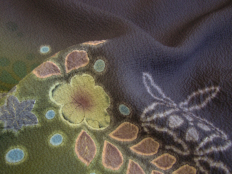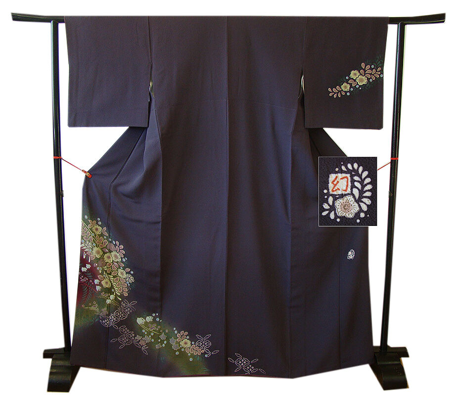 | 商品説明 | こちらのお品は「袷」でございますので、10月~5月までお召頂ければと思います。 とてもしなやかなぽってりとした手触りの着心地良い重めの極上ちりめん地の変り織の生地、 渋い黒紅色地に抹茶色ぼかしに辻が花や花草、つゆ草、七宝文等の染柄、 八掛は古代紫色(正絹)、作家の落款入り、幅広い年代の方にお召頂けます。 |