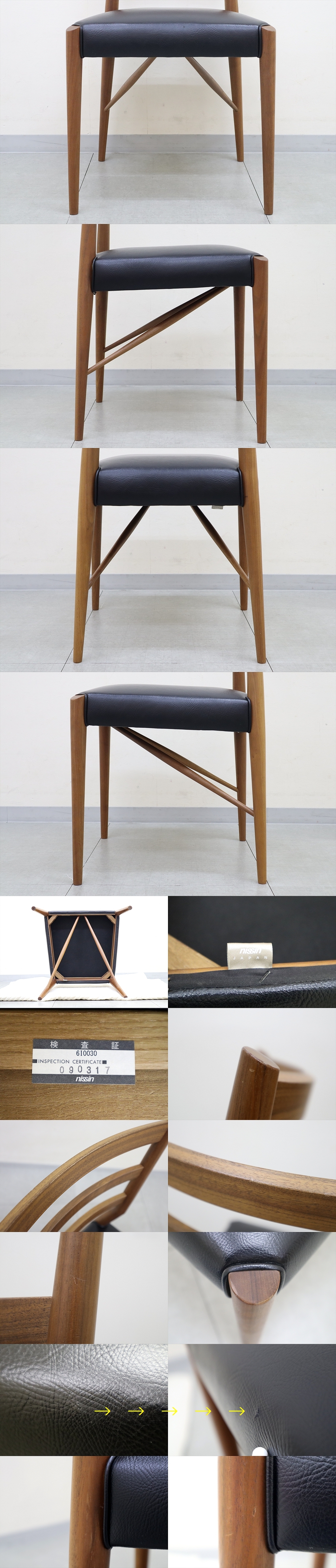 2 飛騨家具 日進木工 nissin GROW グロウ ナチュラルブラウン ダイニングチェア NCC-406 張り込み ブラックウォールナット 椅子 無垢材 1脚
