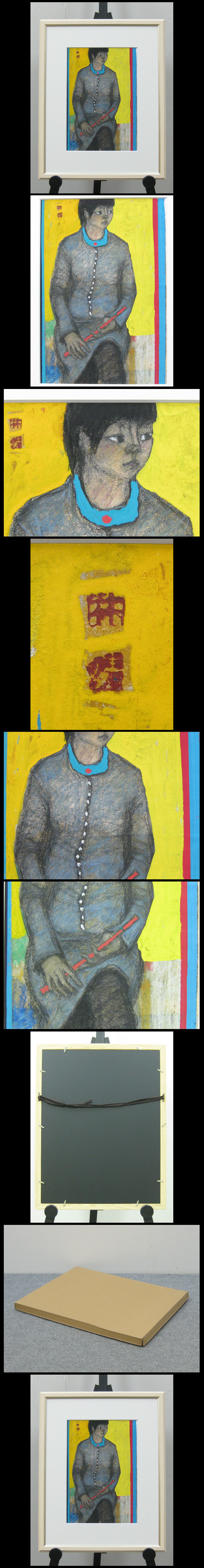 【林清納】昭和11年~ :富山県砺波市柳瀬生まれ。 35年金沢美術工芸大学油絵科卒業。高光一也に師事。在学中より創元展に出品、 35年創元会次賞、安井賞展初入選(以後14回入選)。40年在外研修員として1年間渡欧。 創元会には36年会員、43年審査員。 その後立軌会、風土会に参加し、中心作家として活躍する。 大画面にカラフルな色彩で女性群像を描く 「ナザレの女」シリーズ、「インドの女」シリーズがよく知られる。 ★商品サイズ★ ■額 55×43.5cm ■作品 34.5×23.5cm ★商品の状態★ 表面のアクリル板を外して撮影しました。 作品・マット・額縁共良い状態です。 時代など詳しくは画像にてよく確認のうえでご検討いただければと思います。 どうぞよろしくお願いいたします。 |