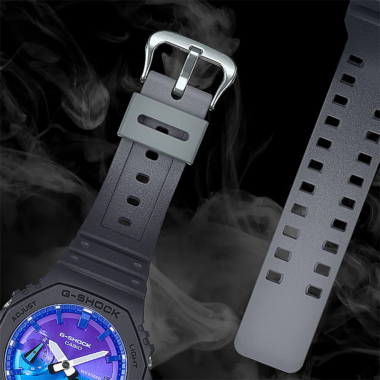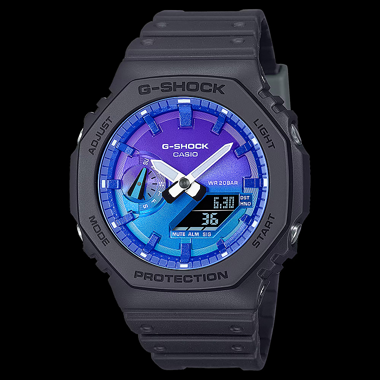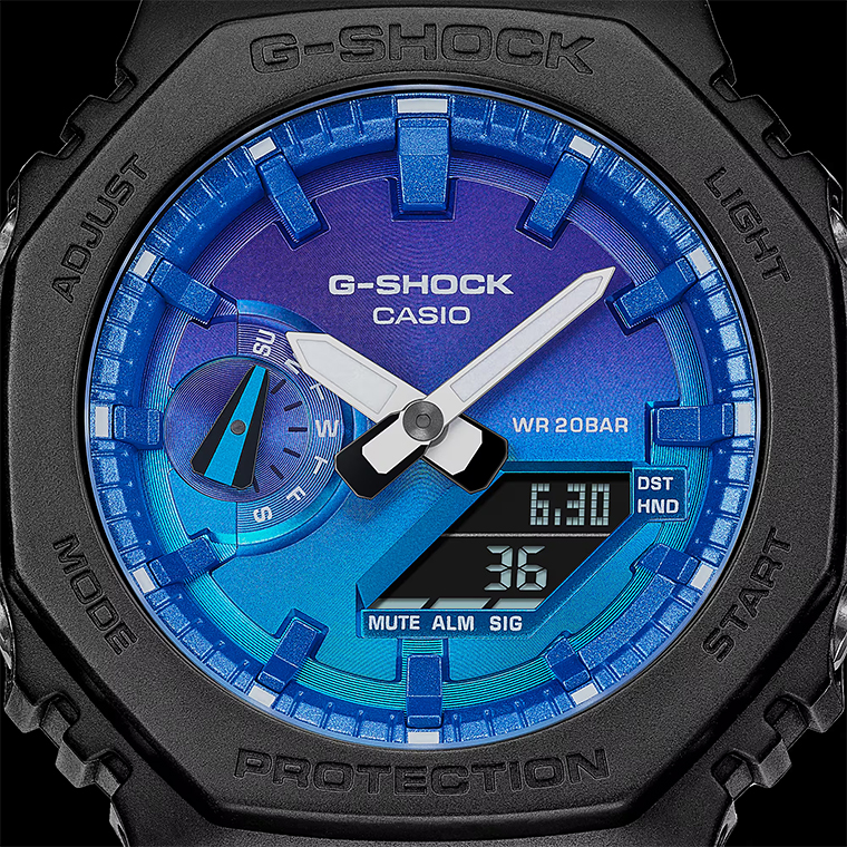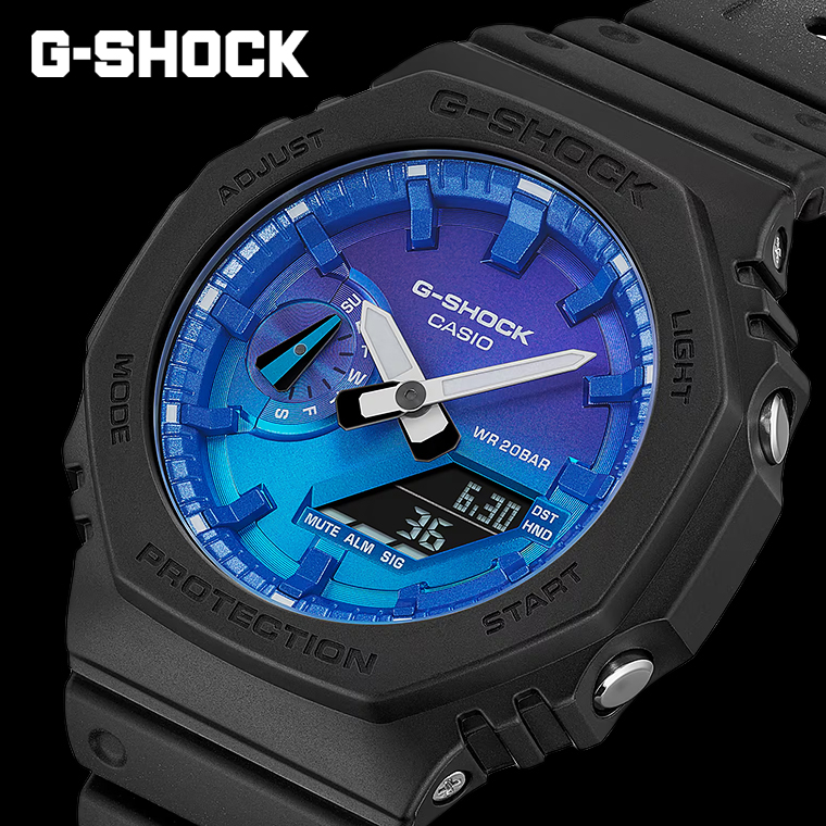 | 【CASIO/カシオ】 G-SHOCK Flame inside SERIES GA-2100FL-1AJF ![]() G-SHOCKは、世界のカルチャーアイコンを刺激的な新しいデザインに 取り入れる方法を常に模索している時計ブランドです。 ![]() 1983年の発売以来、飽くなき強さを求めて進化を続けるタフネスウオッチG-SHOCKから、 G-SHOCKのブランドアイデンティティである挑戦をテーマに、 胸の内で燃える情熱の炎をイメージしたFlame insideシリーズです。 ベースモデルにはオクタゴンケースのGA-2100を採用しています。 ブラックボディに白煙をイメージしたグレーグラデーション塗装を施し、 高い温度の炎をイメージしたクールなブルーのグラデーション蒸着文字板で鮮やかに表現しました。 ![]() <信念を宿すフレイムブルー> あくなき挑戦を続ける信念を、高温の炎をイメージしたブルーグラデーション蒸着で 表現しました。バンドデザインは、スモークがモチーフ。 ブラック地にグレーのグラデーション塗装を施しています。 ![]() <素材へのこだわり> ベゼル、バンドの主な樹脂パーツに「バイオマスプラスチック」を採用。 原料に再生可能な有機資源を使うことで、環境負荷低減への貢献が期待されています。 ![]() 暗所での視認性を確保するLEDライト GA-2100FL:文字板・液晶部(スーパーイルミネーター) ![]() *-*-*-*-*-*-*-*-*-*-*-*-*-*-*-*-*-*-*-*-*-*-*-*-*-*-*-*-*-*-*-*-*-*-*-*-*-*-*-*-* <詳細> (型番) GA-2100FL-1AJF (機構) クォーツ (文字盤) デジタル (サイズ) 48.5 × 45.4 × 11.8 mm (質量 ) 51g (素材) ケース/ベルト:カーボン/樹脂(バイオマスプラスチック) (バンド) 樹脂バンド(バイオマスプラスチック) (防水) 20気圧防水 (電池寿命) 約3年 (構造) 耐衝撃構造(ショックレジスト) カーボンコアガード構造 (ガラス) 無機ガラス (バンド装着可能サイズ) 145~205mm (その他) ネオブライト (メーカー希望小売価格) ¥20,900(税込) (付属品) BOX、取扱説明書 (ワールドタイム) 世界48都市(31タイムゾーン、サマータイム設定機能付き) +UTC(協定世界時)の時刻表示、 ホームタイムの都市入替機能付き (ストップウオッチ) (1/100秒(1時間未満)/1秒(1時間以上) 24時間計、スプリット付き (タイマー) (セット単位:1秒、最大セット:24時間、1秒単位で計測) (アラーム) 時刻アラーム5本・時報 (ライトカラー) LED:ホワイト (ライト) ダブルLEDライト: 文字板用LEDライト(スーパーイルミネーター、残照機能、残照時間切替(1.5秒/3秒)付き) LCD部用LEDバックライト(スーパーイルミネーター、残照機能、残照時間切替(1.5秒/3秒)付き) (カレンダー) フルオートカレンダー (操作音ON/OFF切替機能) (精度) 平均月差:±15秒 (その他機能) 12/24時間制表示切替 針退避機能(針が液晶表示と重なって見づらいときは、 針を液晶表示の上から一時的に退避させることができます) 新品未使用 *-*-*-*-*-*-*-*-*-*-*-*-*-*-*-*-*-*-*-*-*-*-*-*-*-*-*-*-*-*-*-*-*-*-*-*-*-*-*-*-* |