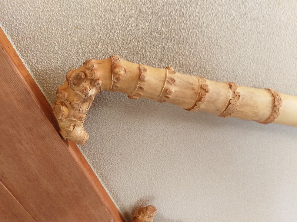 根を伴う竹材を掘り起こすのは、地獄にいるのと変わらない心地です。直径が2cmのような細い竹だと掘り起こし、枝等の不要部分を切り落とし、根部分を出来るだけコンパクトにし、根と土がついた状態で、少なくとも5kgくらいはあります。一本当たり掘るのに3時間ほど掛かり、掘り起こしてからの仕上げ処理、山から運んできて、車で家に持って帰る、数年の保存、最後には現在のような状態となりました。正直言って大変です。