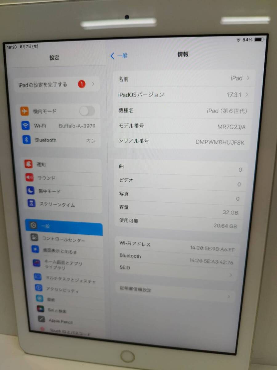 【Wi-Fiモデル】iPad 第6世代/32GB/A1893〈MR7G2J/A〉