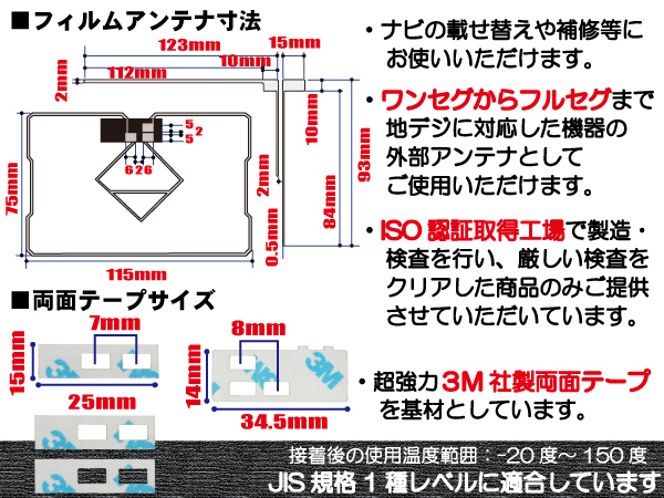 ◆注意事項 供給元の都合により、剥離紙の色が赤になる場合がございます。 ご自身のアンテナ形状をご確認いただき、画像寸法を確認の上御購入いただきますようお願い致します。 受信感度の保障はしておりません、不安な方はメーカー純正品をご購入下さい。 電波を通しにくいガラスやフィルムを貼り付けたガラスでは受信感度が低下する場合があります。 天候・場所等により受信感度が悪くなる場合がありますが異常ではありません。 車種ごとの取付説明書はございませんのでご了承ください。 この商品はフィルムのみとなりますアンプコードは付属しておりません。 電波の受信感度の向上を保証するものではありません。 ワンセグの機種をフルセグにすることは出来ません。 メール便発送の場合、万が一エレメントが折れたり曲がったりしていましても保証がありませんことをご了承の上ご購入願います。 新品未使用品ですが外観の汚れ保管の際の傷等がある場合がございます。 メール便での発送は厚み制限の関係上製品をそのまま封入する場合があります。御了承ください。 外観の傷、商品の若干の傷等は使用上問題ありませんので、ご容赦ください 完璧を求める方、極端に神経質な方の購入はご遠慮ください 写真はイメージです 写真と実際の商品の外観が予告なく変わる場合がありますが、使用には問題ありませんのでご理解ください ブラウザの関係で実際の色とは異なる場合がございます 保証についての詳細はこちらをお読み下さい。 https://labo1.net/hosyou/komono.html 本商品は到着後7日間の初期不良対応が適用されます 加工および一度使用した商品、フィルムを剥がした商品の返品及び交換には対応できません (到着後すぐに目視にて商品をご確認ください) ノーサポート商品です。 ご自身で取り付けできない場合は専門の知識を持った専門店で取付けを行うことをお勧めいたします ◆免責事項 法律上の請求原因の種類を問わずいかなる場合においても、 購入した製品自体、または製品の使用から生じた直接的、間接的な損害に関して、 弊社はその一切の責任を負わないものとします | ||