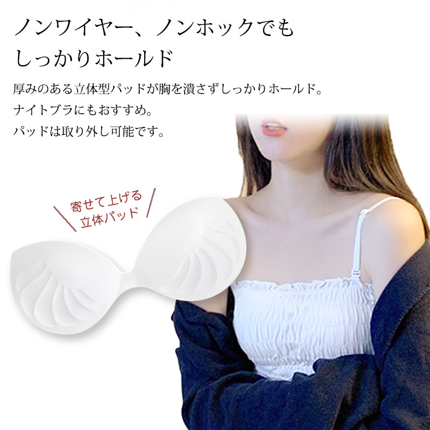 厚みのある立体パッドが胸を潰さずしっかりホールド。