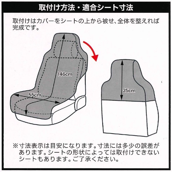 ●主な特長● ◆アウトドア・マリンスポーツ・ウインタースポーツペットとのドライブに! ◆防水素材でサッと拭くだけお手入れ簡単! ◆様々な形状のシートにも対応 ※適合については画像で確認下さい。 ※特殊シート・特殊ヘッドレスト(特に大きいヘッドレスト)の場合は、取り付けできませんので、シート形状をご確認の上、お買い求めください。 ●商品詳細● ※大垣産業 BONFORM ※品質/ポリエステル:100% (裏)PVCコーティング ※カラー/ブラック