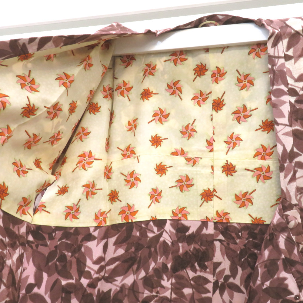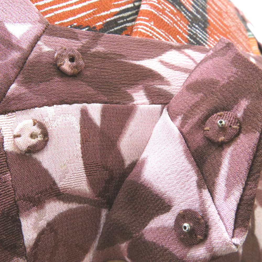 | 商品説明 | 昔の長め丈の道行です。ピンク紫系の優しい色味に渋めな紫の濃淡で葉模様がデザインされたアンティーク道行(昔道行)です。 地模様の光沢も所々に感じられ、たっぷりと入った葉模様がオシャレ。上品さも感じられるレトロな雰囲気のお品です。羽裏は カワイイかざぐるまの模様入りです。 ちりよけとして・気温の下がる季節の防寒アイテムとして・大切なお着物の汚れ防止として オススメです。 | ||