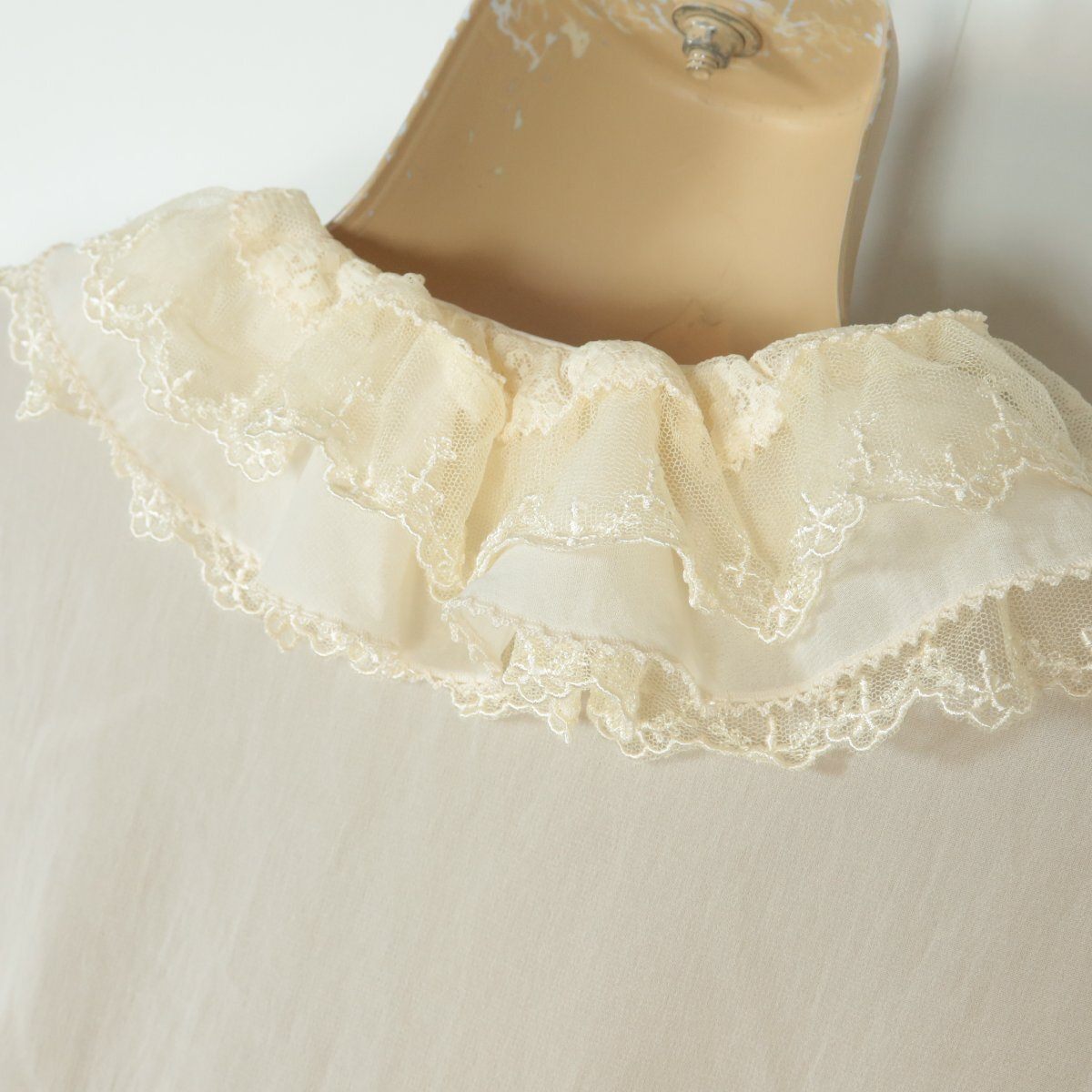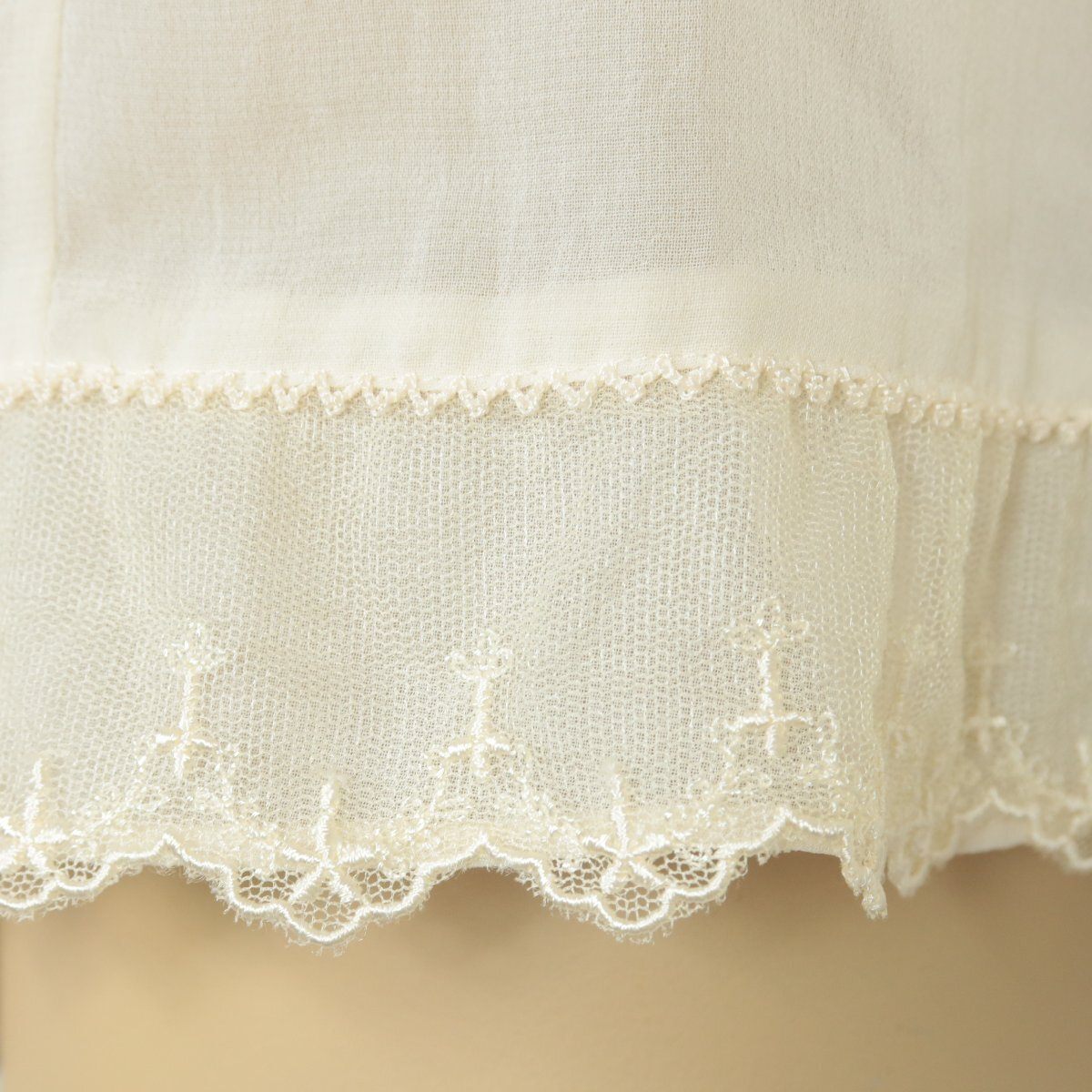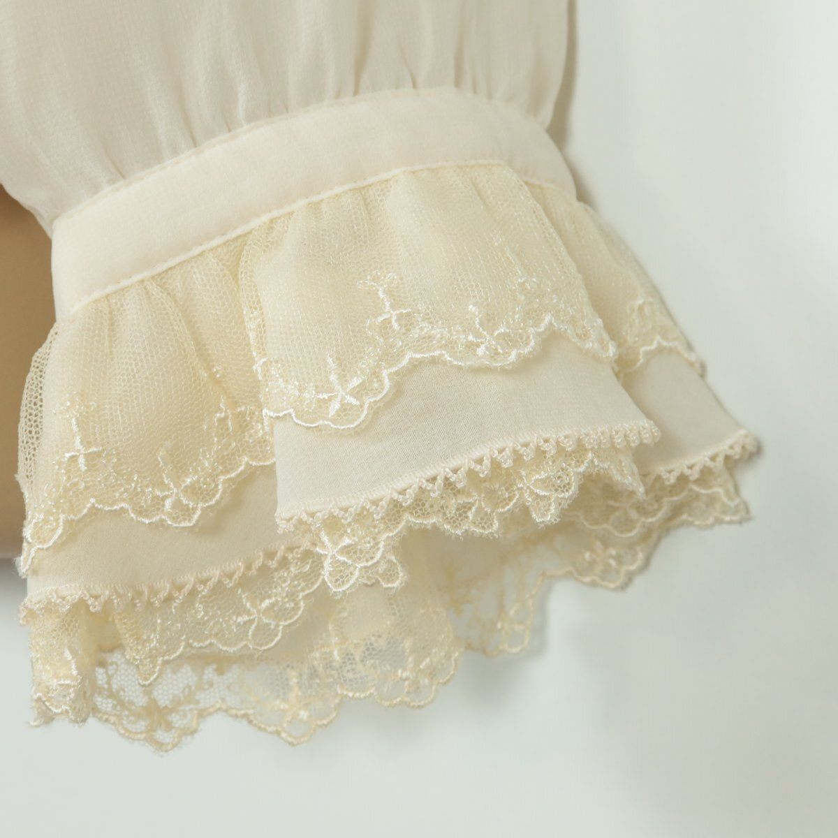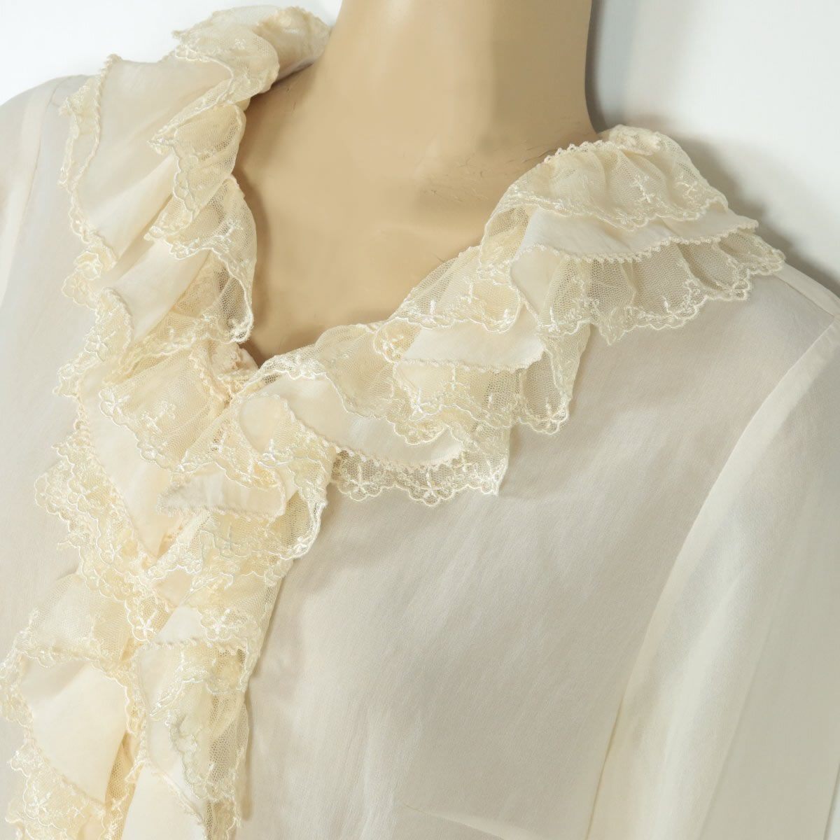 | 商品説明 | 【実寸約】肩幅35袖丈60バスト94着丈54(cm) 【サイズ表記】 9 【素材】ポリエステル100% 【状態】使用感少なめの美品 【デザイン】 クリーム色系 フェミニンな長袖ブラウスです。 襟からフロントにかけて布とレースのフリルがたっぷりほどこされています、 シアーな素材がエレガント♪ 袖口のかぶせ段々フリルもキュート! フロントは上から下までボタンで開くデザイン。 裏地なし。ポケットなし。肩パッドなし。 レイヤードのロマンティックコーデにぴったりのアイテム! |
