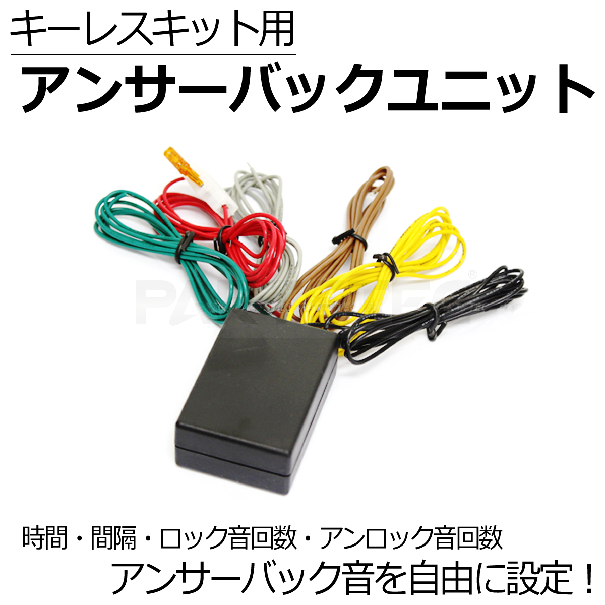 | 商品名 | 純正・後付け キーレス エントリー 用 サイレン アンサーバック ユニット | 商品説明 | ■純正キーレス、 後付キーレス、 でロックまたはアンロックをすると純正サイレンまたは、後付けサイレンの音でアンサーバックをさせるユニットになります。 ■アンサーバック音のオン時間、間隔、回数などが自由にお好みで設定できます。 〔各種設定 全10段階〕 1.サウンドON時間設定 2.サウンド間隔設定 3.ロック時アンサーバック回数設定 4.アンロック時アンサーバック回数設定 ■本商品はACCのON/OFFで各種設定が可能です。 ■ウインカー点滅機能はそのまま点滅が維持されます。 ※ウインカー点滅は本商品を取り付ける前に点滅機能があった場合に限ります。 ■マイナスコントロールの車両でも取付可能。 ※マイナスコントロールの車両でも一部特殊車両を除きロック・アンロック時に+12V出力が取れる配線がございますのでそちらをご利用ください ☆送料を安くされたい方、こちらの商品は(プチプチで保護して発送!)メール便対応となっております! |
