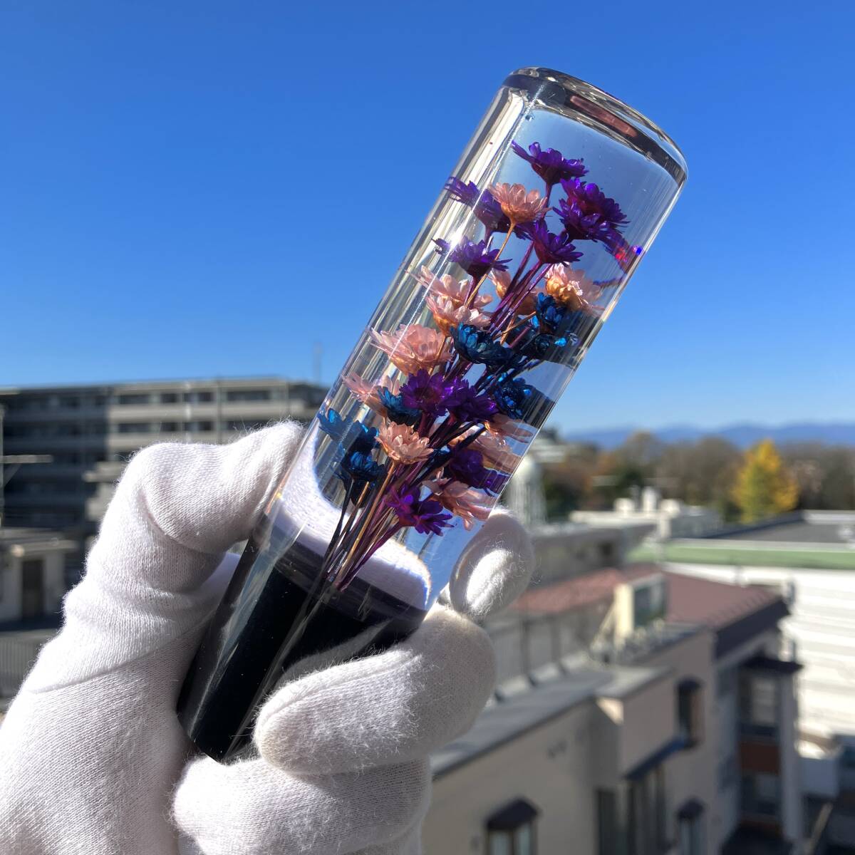 ハンドメイド 水中花 シフトノブ 街道レーサー 軽トラ フェラーリ エンドナット 旗棒 トラック トラック野郎 カスタム 一点物 150mm ロング | |||