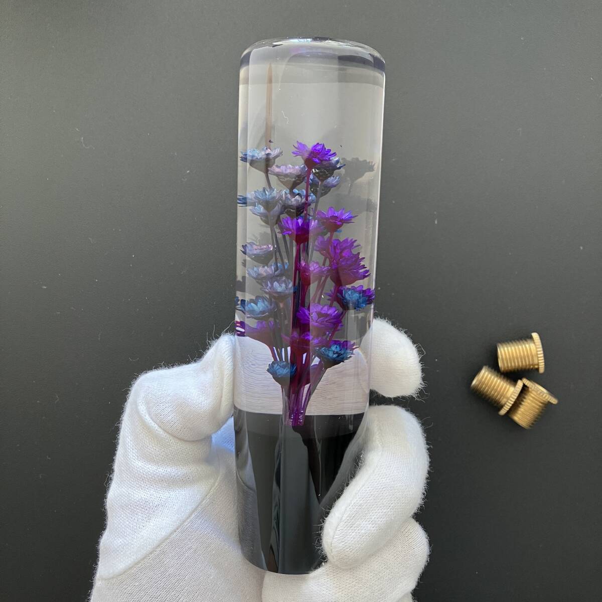 | 車内を彩る昭和レトロの懐かしさ 水中花 シフトノブ 汎用 15cm 150mm 職人による ハンドメイド 手作り 当時物 当時モノ 幻想的な美しさ 綺麗 透明 クリア 新品 044682 【どこか懐かしさを感じるデザイン】 昭和レトロを感じる水中花が美しく幻想的なクリスタルシフトノブ。 光に当たるときらきらと反射し、高級感のある印象に。車内の雰囲気を一変させます。 【ひとつひとつ手作りされたこだわりの逸品】 ひとつひとつ違った表情を見せるハンドメイド品。 毎日の運転が楽しくなる愛着の湧く逸品です。 【車内の雰囲気を一変させる幻想的な美しさ】 お使いのシフトノブをこのシフトノブに変えるだけで車内はたちまち和の雰囲気に。 愛車のカスタムやイメチェン、模様替えをお考えたの方におすすめのアイテムです。 【AT・MT対応!幅広い車種に対応】 商品本体のネジ径はM12×1.25、付属のアダプター3点のネジ径はM8×1.25、M10×1.25、M10×1.5。 【幅広い車種に対応】 汎用品のため、ほとんどのトヨタ/スバル/スズキ/ダイハツ/ニッサン/マツダ/ミツビシ/ホンダ車に対応できます。 【簡単取付】 ねじ込み式なので、イモネジで締め込むだけで簡単に取り付けます。 【サイズ 150mmのロングタイプ】 存在感のあるロングタイプで握りやすく、なんとも言えない握り心地が癖になります。 シフトチェンジもしやすく、助手席から見えるそのシフトさばきはかっこよく映ります。 【プレゼントやギフトにも最適】 車好きの旦那さんや彼氏さん、友人へのプレゼントにいかがでしょうか。 おもしろいデザインで喜んでもらえ、話のネタになること間違いなし♪ 【水中花シフトノブ その他のデザインはこちら】 | |||