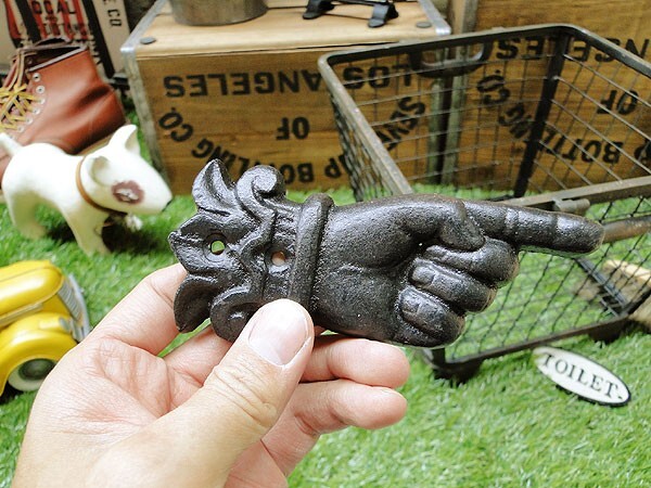 お店でよく見かける「トイレはこちら!」「レジはあっち!」なんて指先で案内してくれる昔ながらのサインアートをアイアンで再現したのがコレです。| 出价者 | 信用 | 价格 | 时间 |