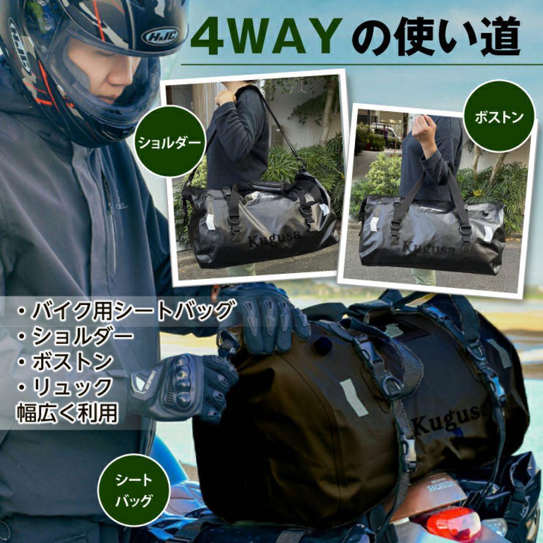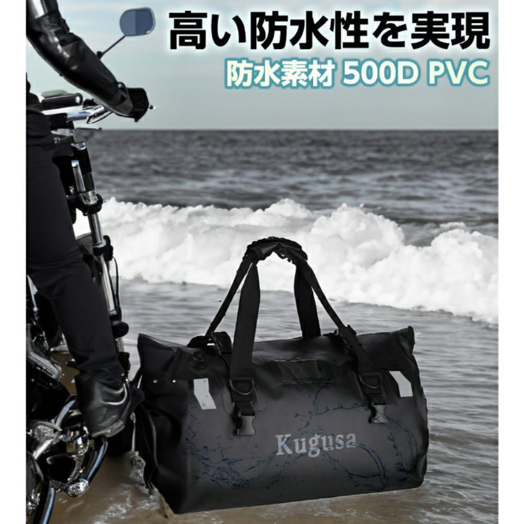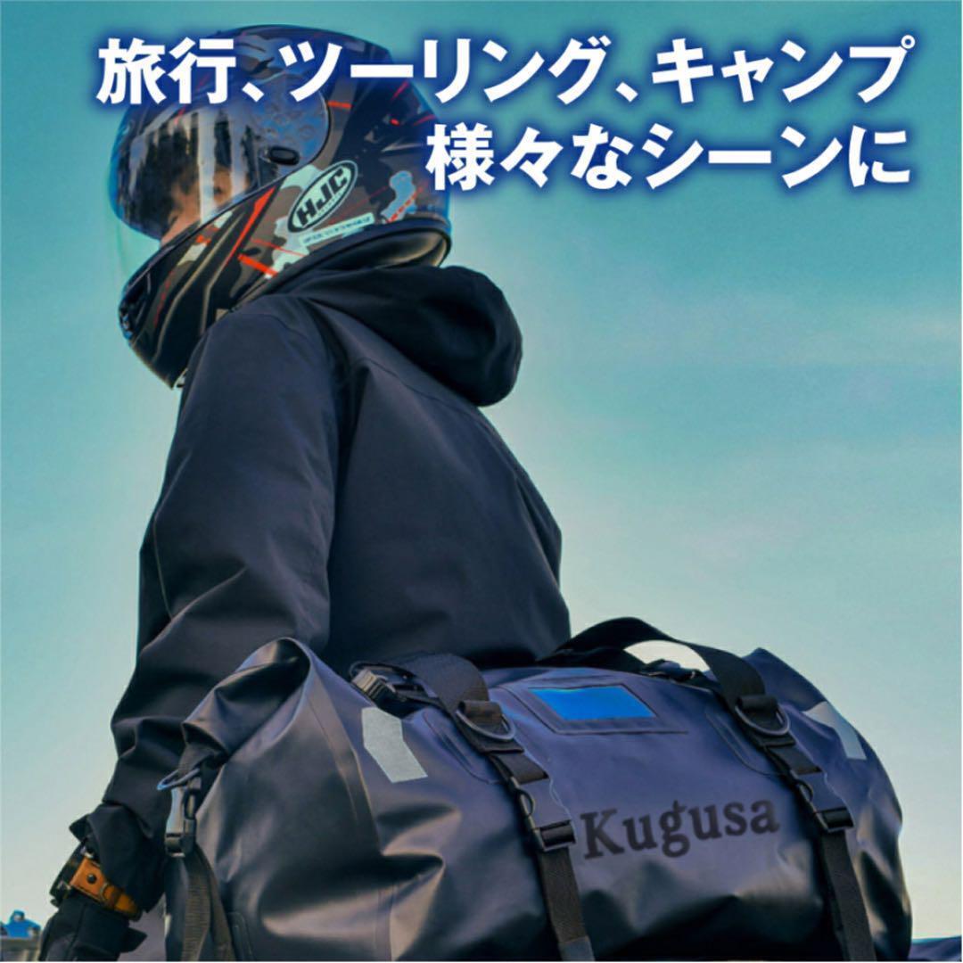 高い防水性が特徴のバイク用シートバッグです。雨や紫外線によって経年劣化しにくい丈夫な防水素材の500D PVCを使用し、縫い目なしのシームレス加工。ロールトップデザインがより防水性を強化しました。(3回巻きで効果大)