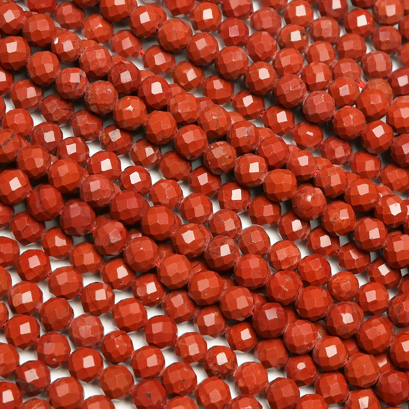 趣のある色合いが上品なレッドジャスパー小粒面カット丸玉[プレミアムカット]です。