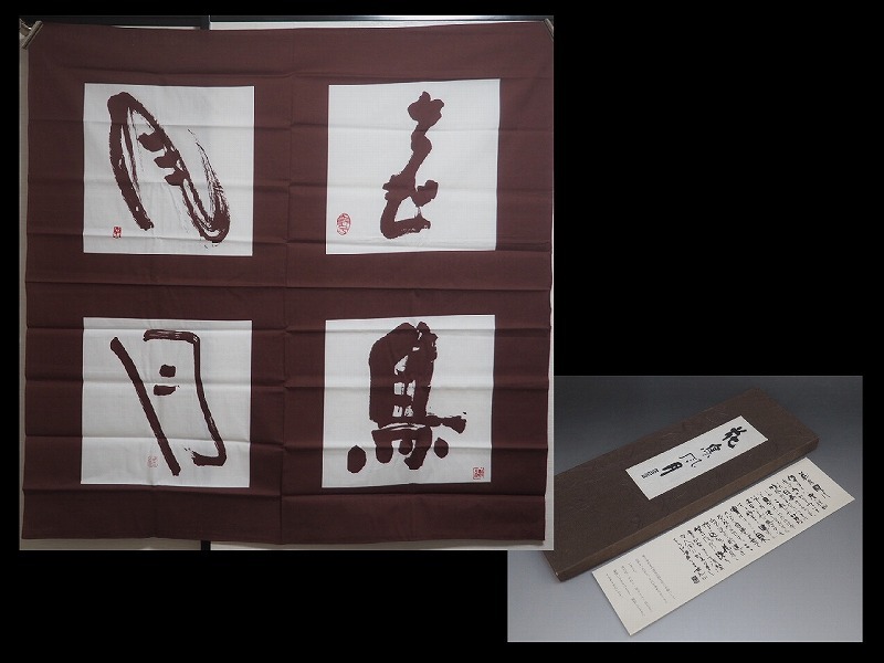| B1645 東大寺 清水公照 花鳥風月 染物 化粧箱付 ☆ 106㎝×108㎝ 風呂敷 ふろしき 古民具 和装小物 テーブルクロス のれん 暖簾 帛紗 袱紗 | ||